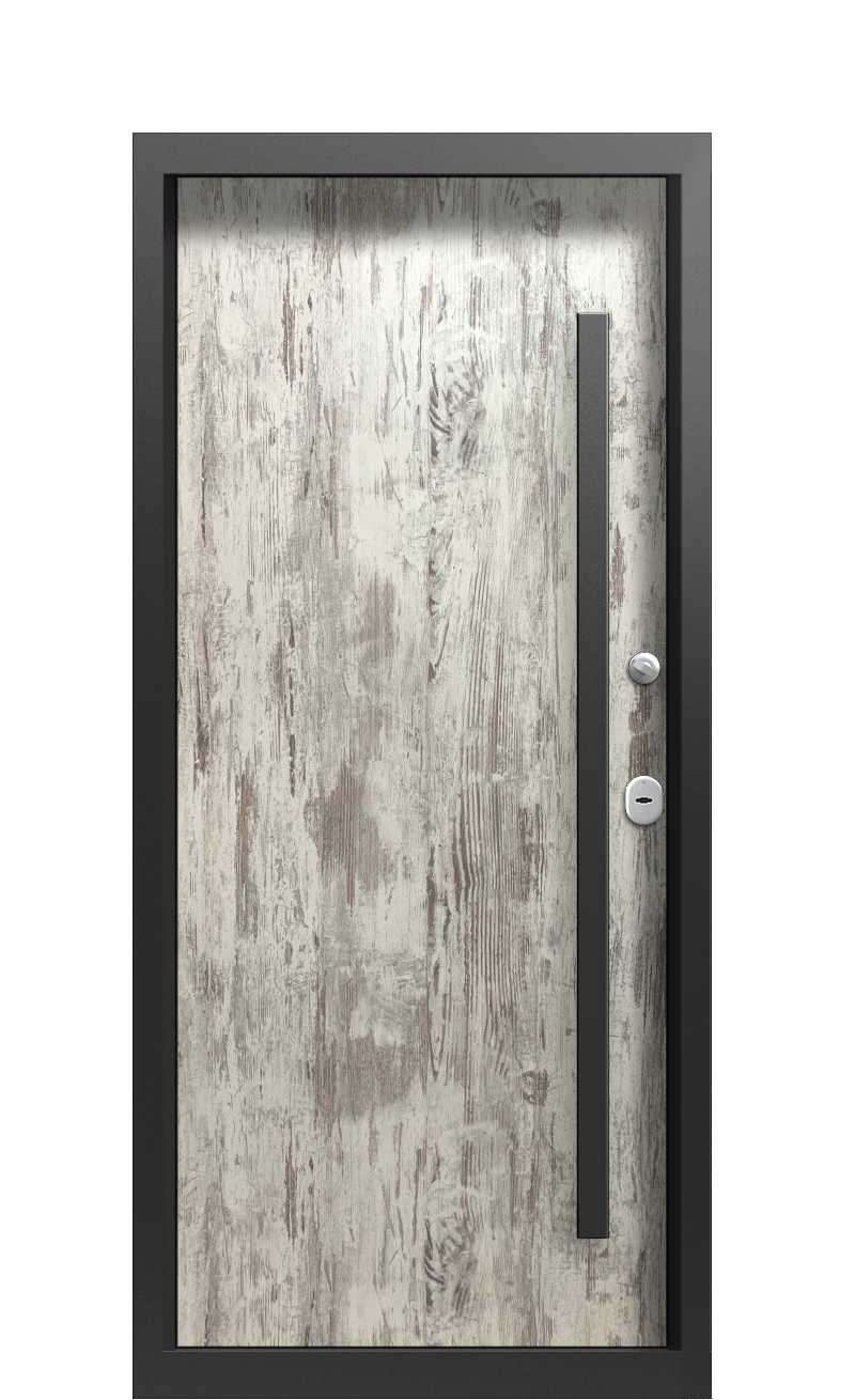 Внутри панель декорирована фактурной панелью “Дуб винтаж”. Антивандальное HPL покрытие передает рисуноку натурального дерева, который приятен на ощупь. Эффектно выглядит контраст насыщенного черного металлического короба и светло состаренной поверхности.
