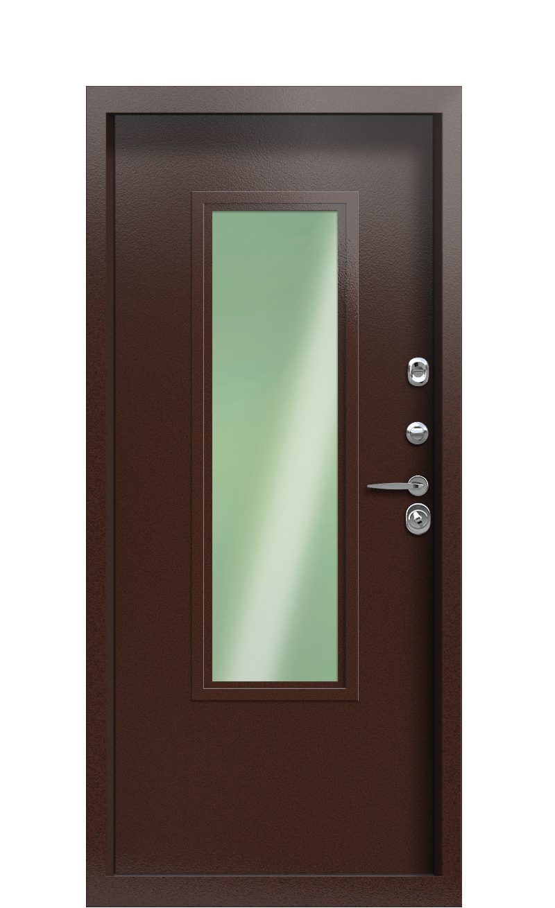 Дверь Termo Bronze Kale 2543 идеально подходит для установки в загородных коттеджах, частных и дачных домах, а также в любых помещениях, вход в которые осуществляется непосредственно с улицы.Внешний и внутренний листы металла разделяет прослойка с низкой теплопроводностью. Это терморазрыв. Его задача – прерывание теплопотока между областями с низкой и высокой температурой. В сочетании с многослойной теплоизоляцией, такая технология обеспечивает максимальное удержание тепла в помещении, не допускает промерзания конструкции и образования наледи на поверхности.Такая дверь доказала свою эффективность даже в условиях сурового климата.Отделка выполнена металлом, окрашенным полимерной краской в цвет Bronze. Вверху установлен карниз. По центру с обеих сторон установлено прямоугольное зеленое остекление.Стандартный размер – 880х2050 мм. По запросу клиента изготовим эту модель с индивидуальными параметрами.Фабрика Термо изготовит на заказ надежные входные двери с эффективной теплоизоляцией для вашего дома. 3000 вариантов оформления, импортные комплектующие и фурнитура – все это вы найдете у нас.