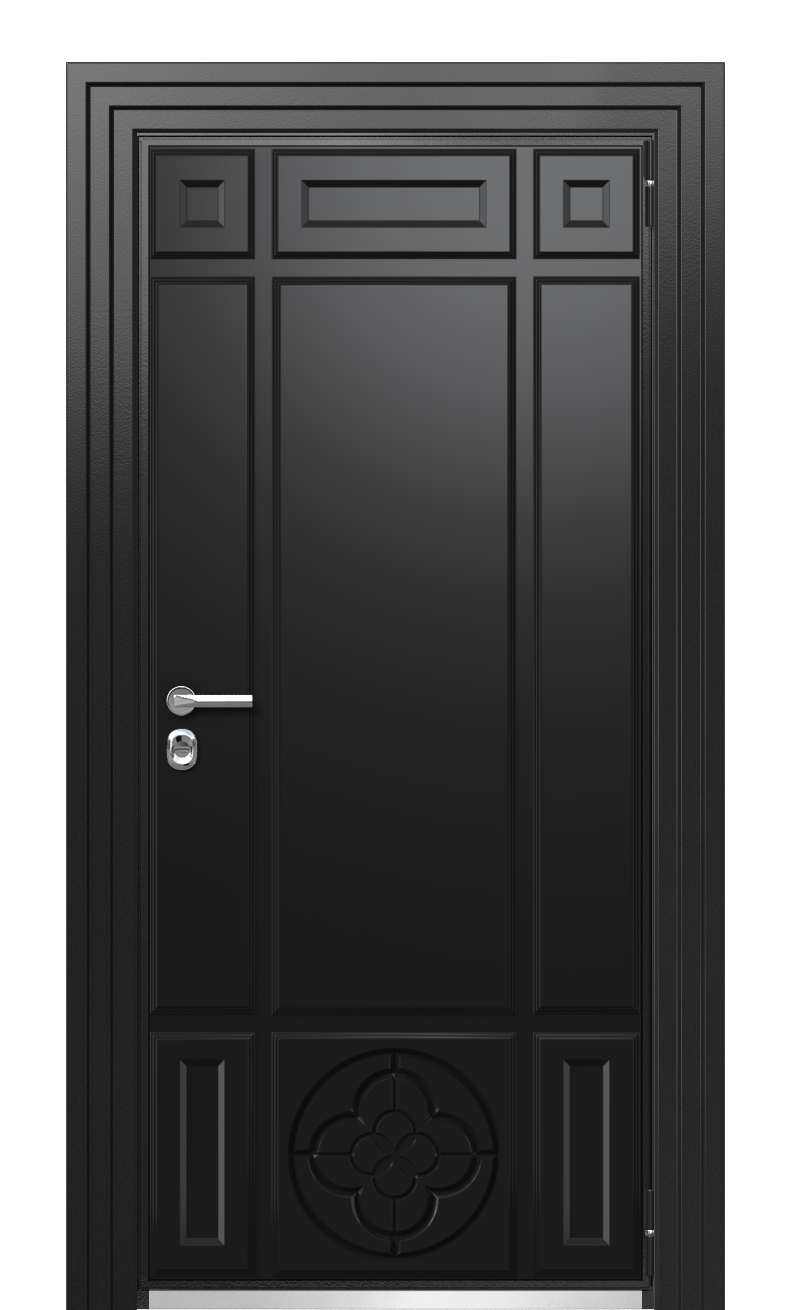 Дверь TermoWood Ral 9005 Тёмный Мрамор 653 сочетает индивидуальный впечатляющий дизайн и высокие эксплуатационные показатели. Установка такой модели в частном доме или загородном коттедже решает проблему сквозняков, промерзания и обледенения.В конструкции установлен терморазрыв – прослойка пробкового листа, который сглаживает разницу температур внутри помещения и снаружи. В полотне и коробе уложен многослойный утеплитель. По контуру размещен качественный уплотнитель немецкого производства.Основной замок Кале сувальдного типа обеспечивает защиту от проникновения злоумышленников. Он устойчив к различным механическим воздействиям. В двери также установлена ночная задвижка, которой можно запереться изнутри без использования ключа.Для отделки использованы разные материалы. Для внешней стороны – панели Collori с матовым покрытием цвета Ral 9005 (Черный янтарь). Декоративная решетка выполнена фрезерованием. Внутренняя часть обшита гладкими и очень твердыми панелями Terma Premium+ с пантографическим рисунком, имитирующим текстуру камня. Цвет – Темный мрамор. Проем оформлен в виде дверного портала.Фабрика Термо предлагает качественные входные двери с терморазрывом. Предоставляем 3 года гарантии на свою продукцию. Доставим заказ в любой город России и в страны СНГ.