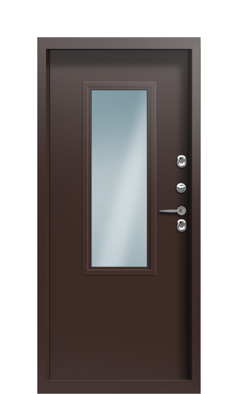 Дверь Termo Milano Kale 2607 обладает высокими тепло- и шумоизоляционными показателями. Для сохранения тепла в помещении и поддержания оптимального микроклимата используется технология терморазрыва. В полотне и коробе установлена прослойка материала с низкой теплопроводимостью, которая сглаживает перепад температур изнутри и снаружи помещения. Благодаря этому отсутствуют мостики холода, дверь не промерзает и не покрывается слоем льда.Высокая степень защиты от взлома и вскрытия обеспечена качественными замками, простыми в эксплуатации.Отделка выполнена гладким металлом, окрашенным в цвет Tobacco полимерной краской. С обеих сторон установлено декоративное прозрачное остекление прямоугольной формы. Металл надежно защищен от коррозии и сохраняет внешний вид и эксплуатационные характеристики долгие годы.Теплую дверь можно заказать на фабрике Термо, выбрав подходящий дизайн из каталога. Мы также работаем по индивидуальному заказу.