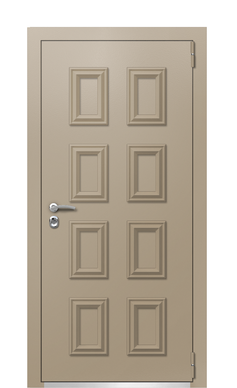 Эта дверь Termo Ral 1019 Kale 26 обеспечивает усиленную защиту от мороза и от квартирных воров. С обеих сторон она отделана металлом, который окрашен в Серо-бежевый цвет. Кроме того, снаружи она украшена багетом и нержавеющим порогом.