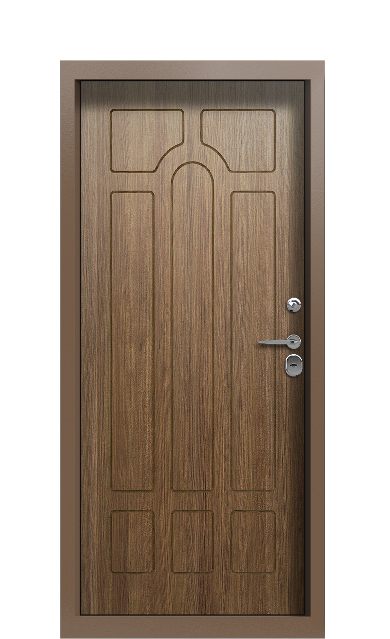 Внешняя отделка корабельной фанерой премиум-класса из Италии с пигментированной испанской пропиткой будет способствовать сохранности выбранного для оформления всей группы цвета и дизайна Ral 8025 Тик 1262. Сюда же идеально вписывается двухсторонняя фрезеровка полотна в разных стилях и элегантная фурнитура хромового цвета.