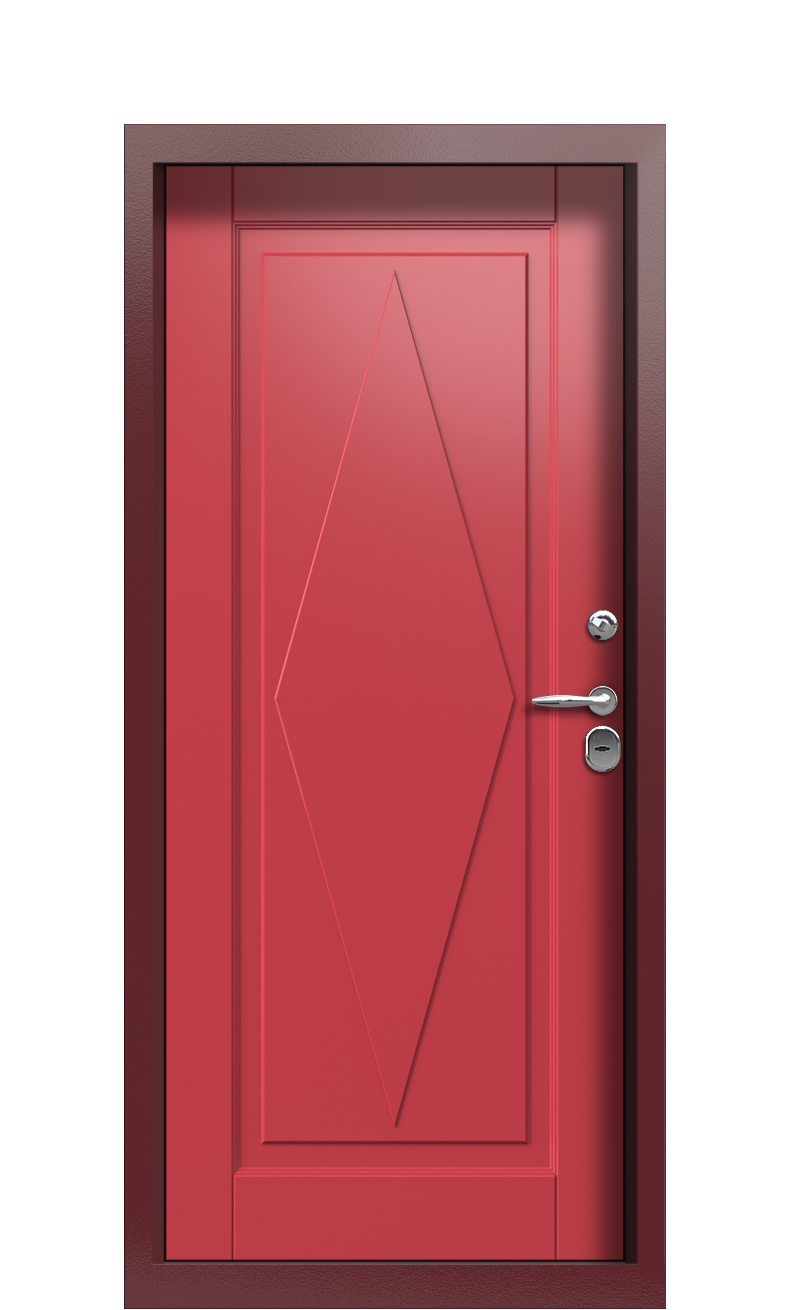 В обоих случаях дизайнерами была предусмотрена сложная геометрическая фрезеровка, отличающаяся конфигурацией элементов. Но главное это все-таки цветовое решение, представленное в виде комбинации Ral 9003 RAL 3031 1281. Эдакая клубника со сливками, которая выглядит не только вкусно, но и очень стильно. Такая дверь позволит сочетать несочетаемое: наружный хай-тек с уютной английским стилем внутри, легкую Скандинавию фасада с индустриальным шиком внутреннего убранства и прочее, тому подобное.