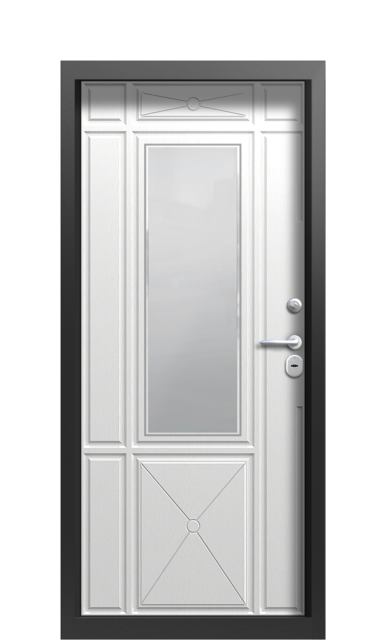 Белая входная группа в черном обрамлении смотрится стильно и необычно, добавляя изюминку в неоклассическое оформление загородного коттеджа. Таким эффектом обладает дверь TermoWood Vesivio Милк 407, украшенная фрезеровкой, внутренней зеркальной вставкой и контрастным коробом, внутри которых скрывается крепкое основание из терморазрывной стали с многослойной изоляцией.Полностью соответствует внешнему оформлению и качество отделки, для которой использовались панели МДФ премиум-класса. Получив влагостойкую защиту, внушительный поперечный срез в 16 мм и поливинилхлоридное покрытие, этот материал не подвергнется изменениям под воздействием внешней среды, сохранив общий дизайн коробки и полотна Vesivio Милк 407.Среди прочих особенностей, заслуживающих внимания – полная комплектация входной группы, включившая в себя лучшую систему защиты Securemme. С таким замком вы будете чувствовать себя за дверью TermoWood Vesivio Милк 407, как за каменной стеной, не боясь вторжения и домовых краж.