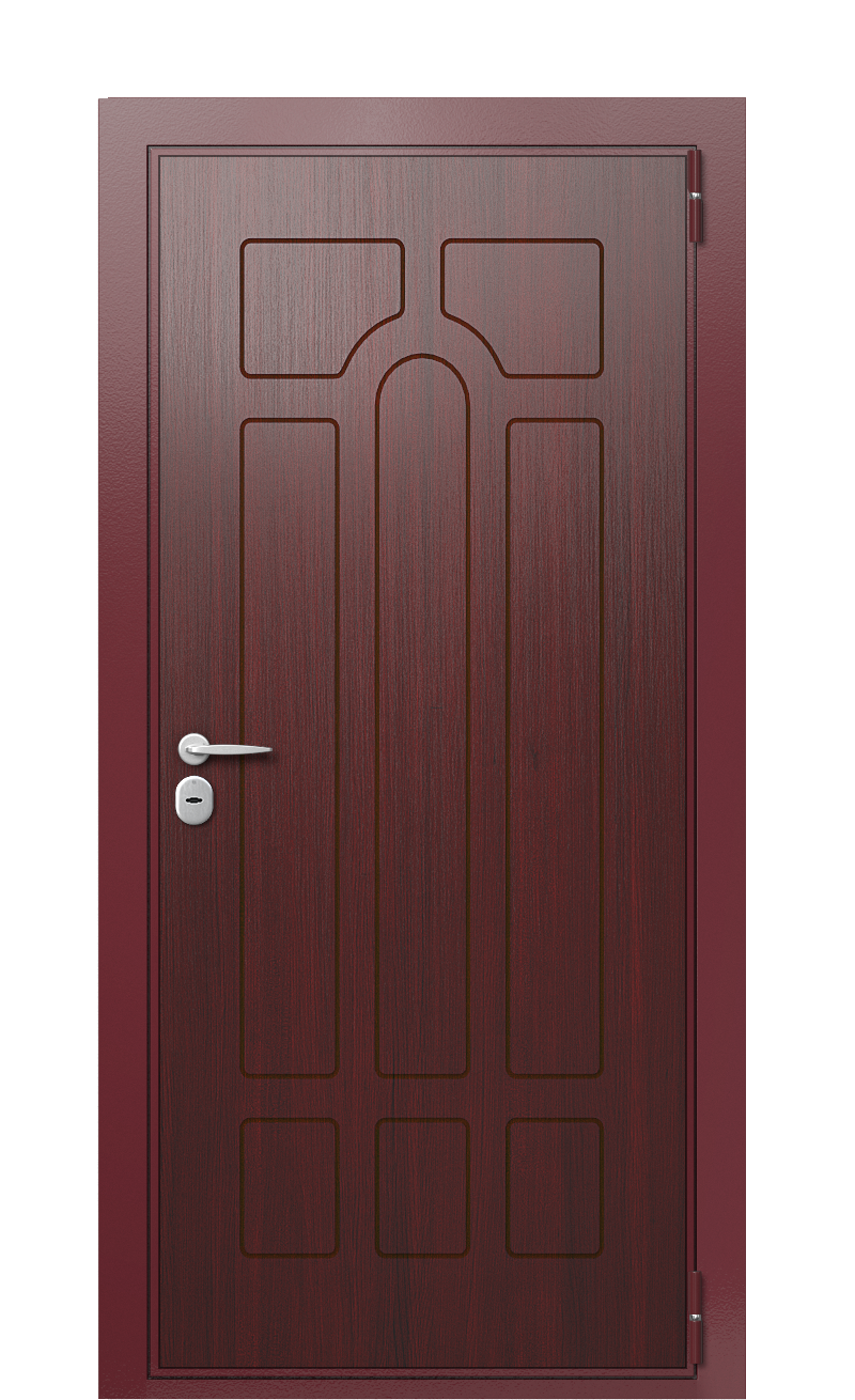 Дверь TermoWood Ral 3005 Тёмно-красный 311 – одна из лучших у производителя, который использовал самые качественные материалы отделки и замковые механизмы банковского класса защиты. Приобрести такую стоит и за ее эффектный дизайн в разных оттенках красной гаммы с фрезеровкой и зеркальной вставкой, а также за надежное полотно с терморазывом, делающее тепловые потери минимальными.