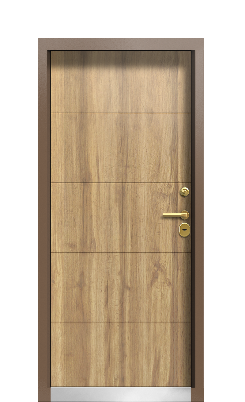 Не придется переживать и за безопасность, поскольку данная модель была укомплектована двумя итальянскими замками с сувальдными цилиндрами Securemme и ночной задвижкой из прочного металла. Для дизайна двери TermoWood Ral 8017 Греческий платан 308 использовалась фигурная и горизонтальная фрезеровка, эффектно сочетающаяся с основном цветом, высоким порожком из нержавейки и золотой фурнитурой. Идеальное решение для дома в эко-стиле и не только.