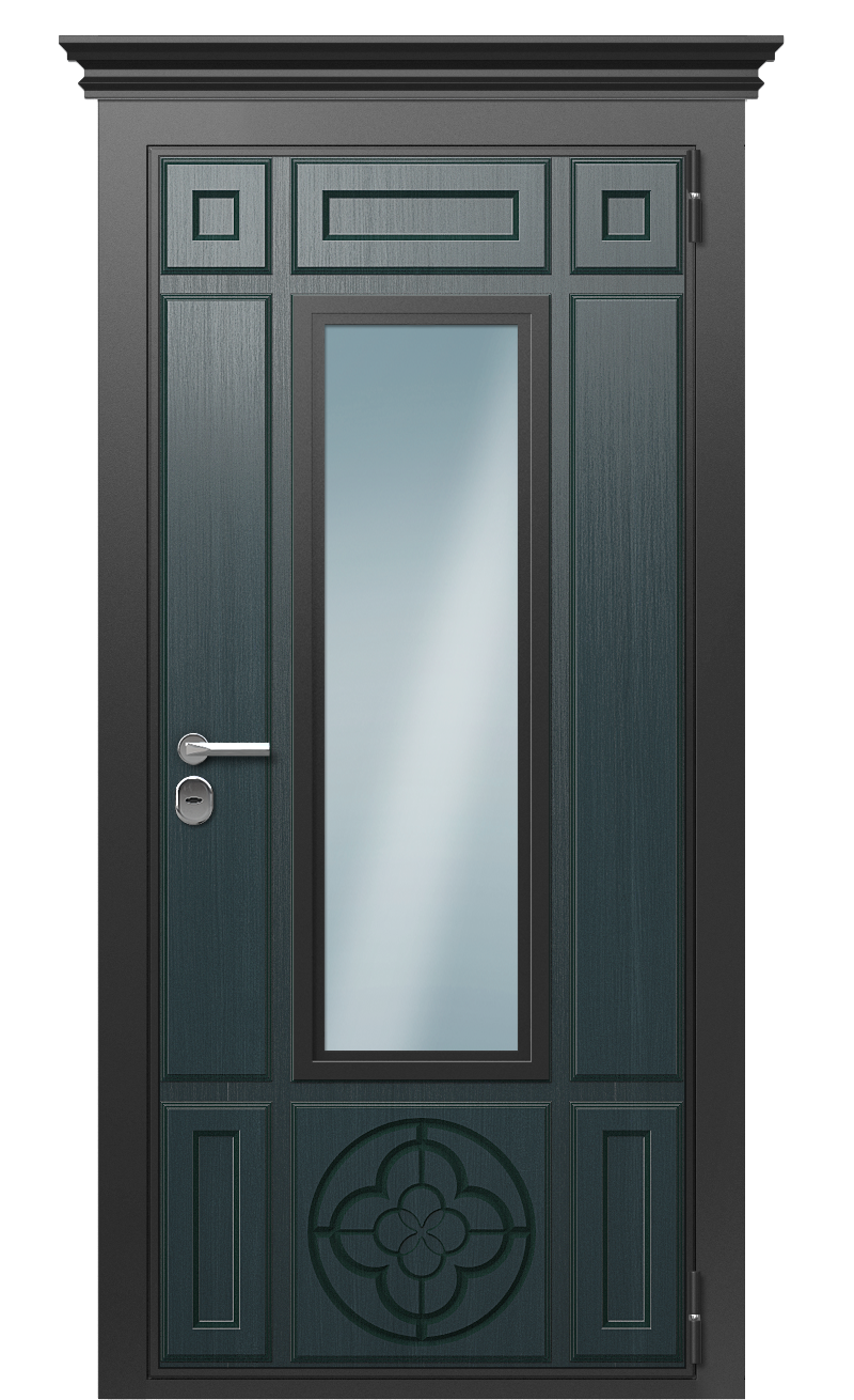 Резная фактура стилизованного под дорогое дерево полотна, зеркальные вставки в решетках с голубым отливом, массивный карниз, добротная фурнитура под хром – дверь TermoWood Vesuvio Серый Антрацит 259 получила множество преимуществ, влюбляя в себя с первого взгляда. Предназначенная для обустройства входной зоны в частных домовладениях, эта модель обеспечит комфортный микроклимат внутри жилых помещений, имея прочный терморазрывный каркас из металла 2-миллиметровой толщины.Особого внимания заслуживает и отделка модели, которая была обшита с обеих сторон корабельными панелями с натуральной древесиной и масляной пропиткой, используемой для обшивки яхт. Все это способствует максимальной сохранности оттенков Vesuvio Серый Антрацит 259, которые не только не поржавеют, но и не выгорят под воздействием ультрафиолета.Замок Securemme, которым была укомплектована эта модель, внесет свою лепту, позволяя не беспокоиться о безопасности своего жилища. Получив его, задвижку, петли и добротные ручки, дверь TermoWood Vesuvio Серый Антрацит 259 не пропустит в дом посторонних, способствуя его максимальной приватности.