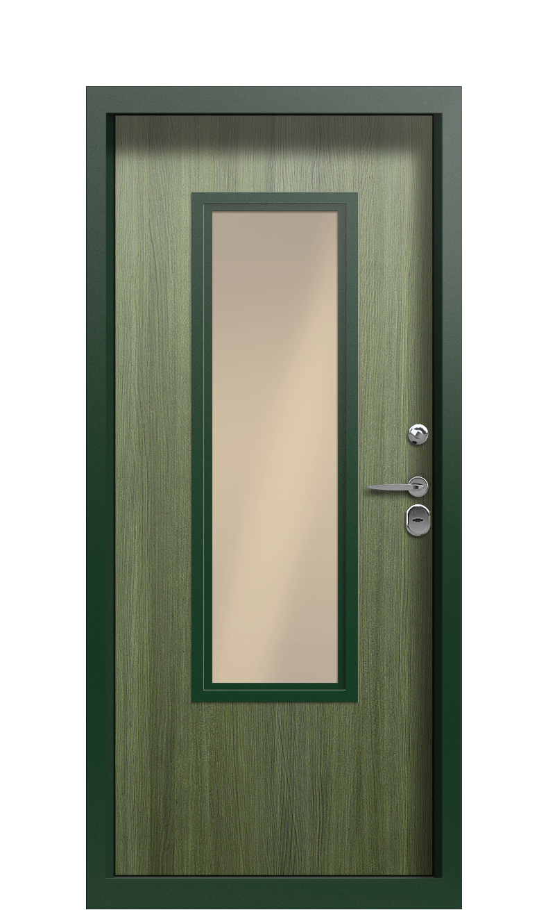 Дверь TermoPlus Patina Woodline Темно-зеленое 2620 – уникальное решение проблемы тепловых потерь для частного дома или загородного коттеджа. При производстве используются современные технологии, которые поддерживают внутри помещения комфортный микроклимат.В полотне и коробе установлен терморазрыв, который разделяет области холодного и теплого воздуха, препятствуя образованию мостиков холода. В конструкции проложен многослойный утеплитель. Благодаря этому конструкция сохраняет тепло внутри даже при самых сильных морозах, не промерзает и не покрывается льдом.Итальянский замок Securemme с сувальдным механизмом надежно защищает помещение от вскрытия и проникновения злоумышленников. Изнутри дверь запирается ночной задвижкой без использования ключа.Оформление этой модели комбинированное. Наружная сторона отделана глянцевым металлом, окрашенным полимерной краской в цвет Patina. Изнутри выполнена обшивка натуральными древесными панелями Woodline в цвете Темно-зеленое. С обеих сторон установлено декоративное матовое остекление бронзового оттенка.Фабрика Термо предлагает качественные теплые двери для вашего дома. Выполняем индивидуальные проекты любой степени сложности.
