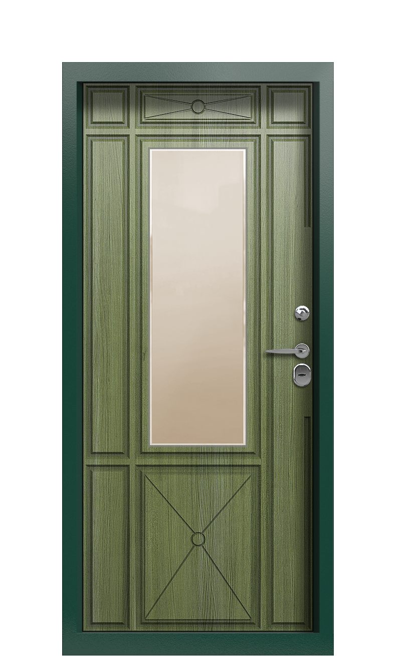 Не всегда так просто подобрать роскошные модели дверей, которые бы идеально сочетались с остальными деталями. Входная дверь TermoWood Ral 6005 Тёмно Зелёное 264 станет смелым решением для тех, кто хотел создать помещение в ярком классическом стиле, а также хочет выбрать современные направления дизайна. Утонченный зеленый оттенок легко дополняется с помощью резных вставок, а с помощью комбинации резных элементов удается добиться максимального внимания зрителя. Чтобы визуально расширить пространство комнаты, были использованы стеклянные вставки, а также утолщение короба в верхней части.