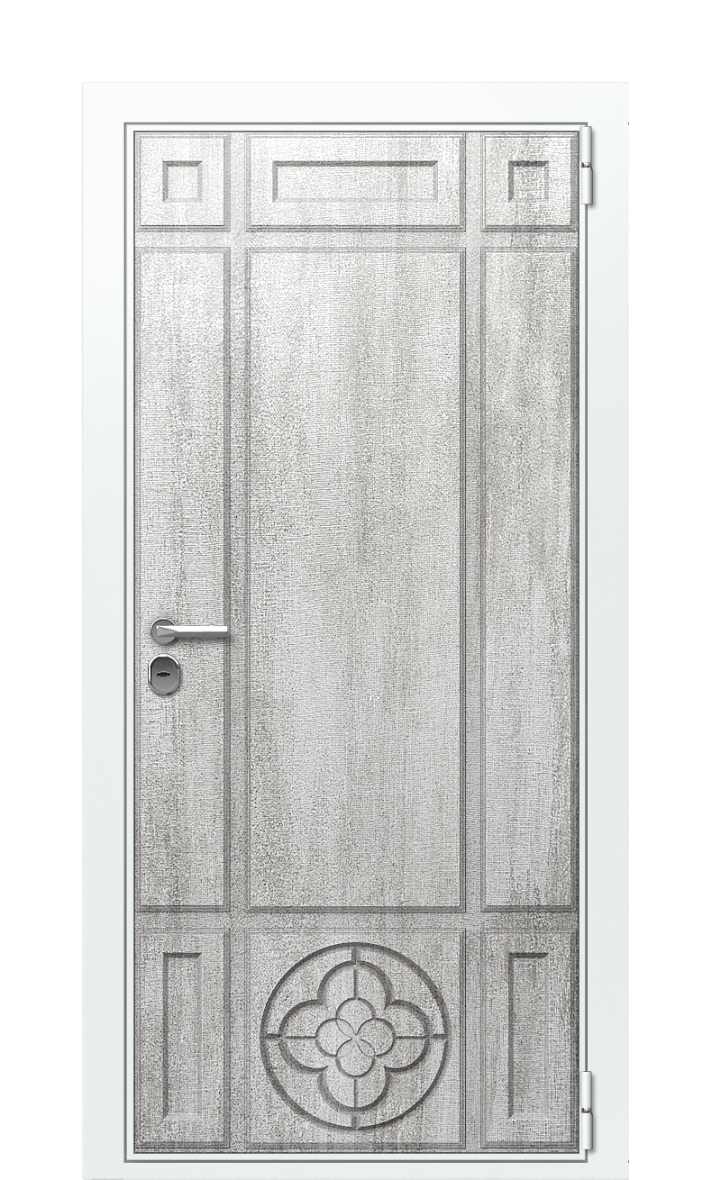 Кроме того, производителю удалось обеспечить высокий уровень безопасности, укомплектовав эту модель сразу двумя итальянскими замками Securemme с металлической защелкой. Порадует покупателей и качество стилизованной под хром фурнитуры, а также декор двери TermoWood Ral 9003 Джут Белый 271, украшенной фигурной фрезеровкой с белым порталом снаружи и контрастными наличниками черного цвета изнутри.
