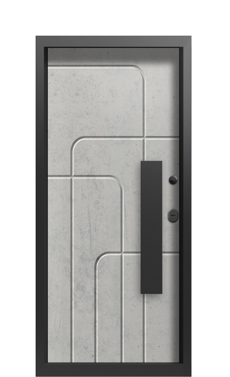 Современная входная дверь TermoWood Decoline Бетон темный, Decoline Бетон светлый - отражение стилистических тенденций конструктивизма и направления Bauhaus. Внешняя и внутренняя фрезерованные панели покрыты текстурной PVC-пленкой, стилизованные под поверхность бетона (Бетон темный) и (Бетон светлый). Пленка израильского бренда обладает устойчивостью к УФ-лучам и не боится влаги.