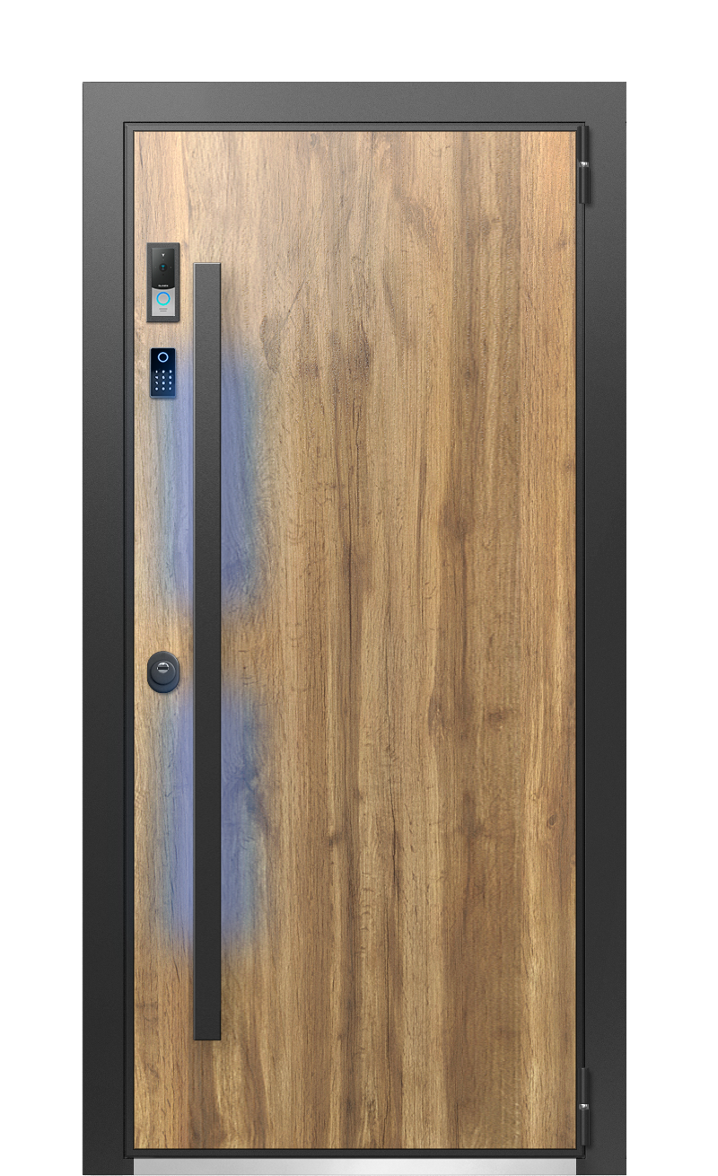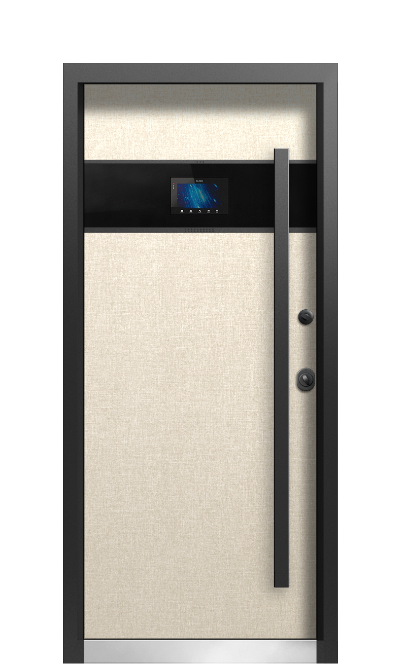 Полотно двери состоит из двух панелей (Decoline и Terma), стального листа 2 мм, 2 слоев фольгоизолона, пенополистирола и слоя Penoplex. Также, как и в коробе, по контуру полотна проходит терморазрыв.