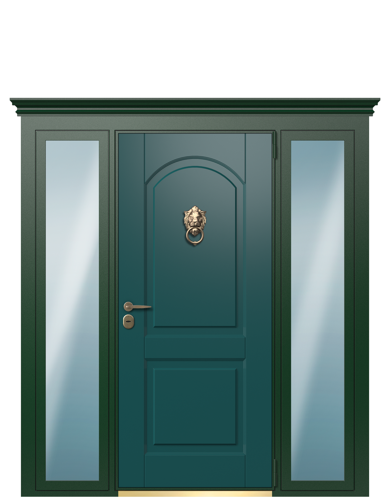 Входная дверь в коттедж или частный дом TermoWood с фрамугами, Collori “Зеленое сукно” , Collori RAL 9005 - яркое решение для классических экстерьеров. Насыщенный натуральный цвет внешней стороны “Зеленое сукно” входной группы станет акцентным элементом внешнего образа дома, а внутренняя часть в нейтральном черном цвете RAL 9005 впишется в любую концепцию внутреннего пространства. Фурнитура в цвете “золото” органично дополняет оба оттенка.