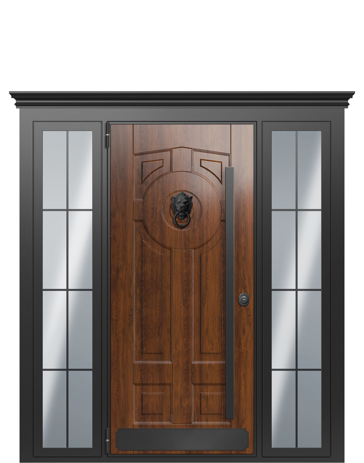 Лучшая защита от холода и злоумышленников. Индивидуальный дизайн для достойных только лучшего. Отделка: панель/панель. Толщина полотна: 110 мм. Толщина короба: 170 мм. Теплоизоляция: 7 слоев. Покрытие полотна и короба в 14 видов цветов по каталогу RAL. Отделка полотна, декоративные панели более 35 видов покрытия и 14 видов рисунков фрезеровок панелей.