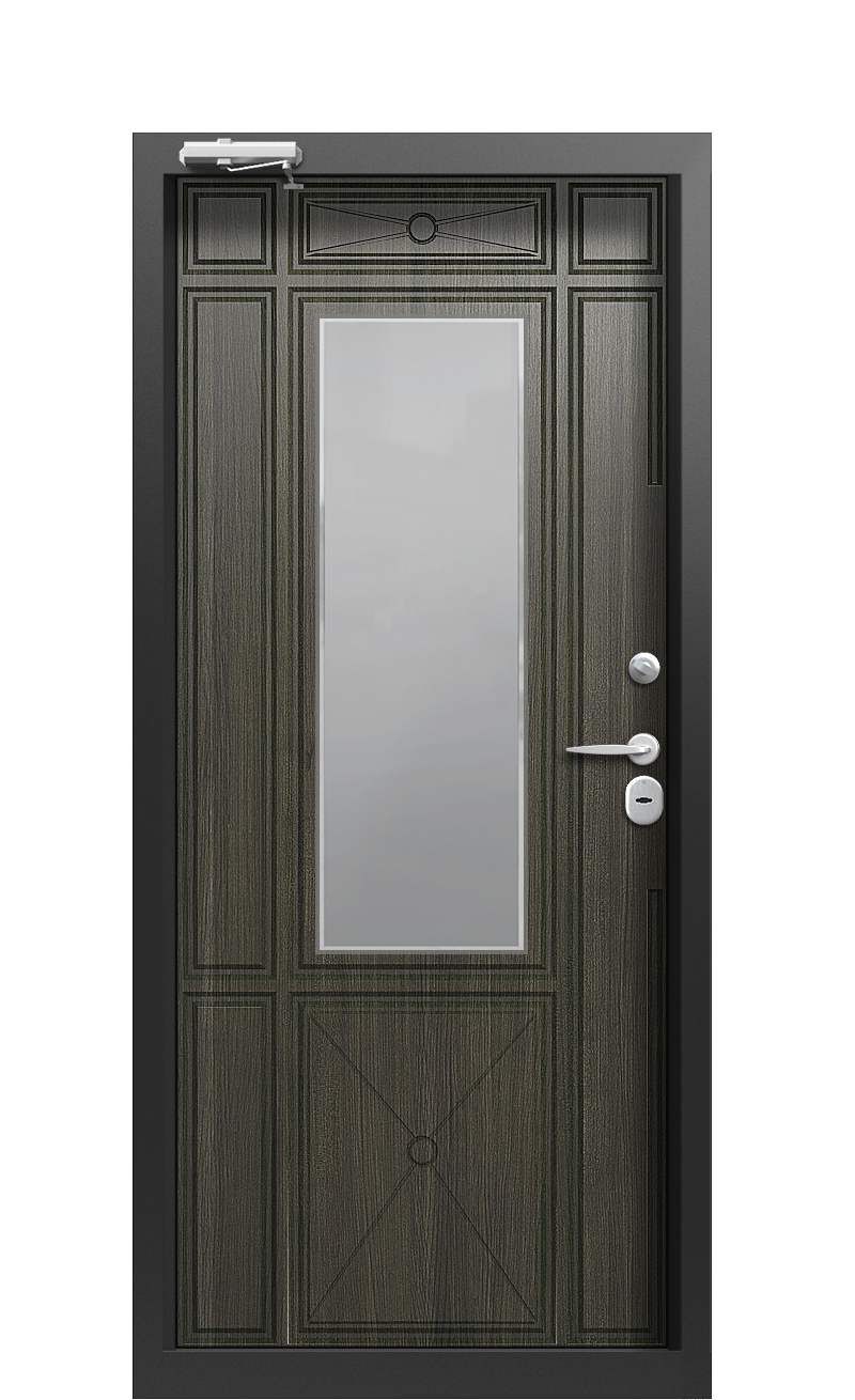 Дверь TermoPlus Ral 9005 Венге 529 производится на современном оборудовании с применением технологий, обеспечивающих ее высокую теплоэффективность. В полотне и коробе содержится термический разрыв. Он расположен между внутренней и наружной сторонами металла и ограничивает их взаимодействие. Благодаря этому помещение не охлаждается, а сама входная конструкция не промерзает и не покрывается льдом.Дверь устойчива к механическим повреждениям и деформациям, связанным с резкими температурными перепадами. Многослойное утепление полотна и короба удерживает максимум тепла внутри помещения, а система уплотнений предотвращает образование сквозняков.Защита от вскрытия и взлома обеспечена двумя итальянскими замками бренда Securemme. Их сувальдный механизм надежен и устойчив к промерзанию. Наружная сторона двери металлическая, окрашенная полимерной краской в цвет Ral 9005 (Черный янтарь). В качестве декора используется багет. Внутренняя сторона обшита элитным панелями Woodline из древесины ценных пород. Цвет поверхности – Венге. По центру установлено декоративное зеркало оттенка Графит.Фабрика Термо изготавливает качественные термодвери с разными габаритами и вариантами дизайна. Наши монтажники выполнят профессиональную установку конструкции.