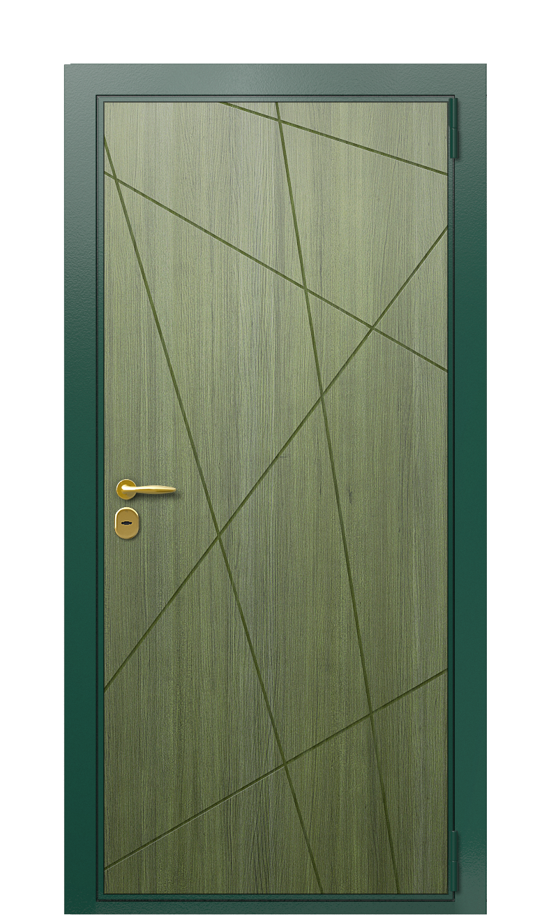 Оформленная в самых приятных природных тонах входная дверь TermoWood Ral 6005 Темно-зеленое 1489 получила премиальную отделку по фрезерованному фасаду и внутреннему полотну. Для создания последнего использовалась 2-миллиметровая холоднокатаная сталь с терморазрывом, не пропускающим внутрь жилого помещения уличный холод и сберегая домашнее тепло от рассеивания и потерь.