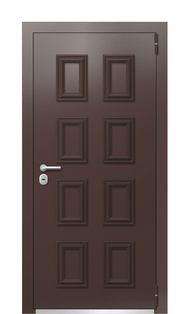 Дверь TermoPlus Ral 8017 Тик 526 – экологичное и безопасное решение для установки в загородном коттедже, частном доме или любом другом помещении без тамбура. модель эффективно противостоит проникновению холодного воздуха снаружи и промерзанию полотна и коробки. Это обеспечивается наличием терморазрыва, греющего кабеля в коробе и многослойного утеплителя.Дизайн конструкции эффектный, запоминающийся. Внешняя сторона отделана качественным гладким металлом цвета Ral 8017 (Шоколадно-коричневый). Она декорирована выступающими над поверхностью багетами. Изнутри дверь обшита панелями Woodline, изготовленная из дуба и африканского дерева. Цвет – Тик, текстура – под древесину. Эта часть декорирована прямоугольным зеркалом оттенка Кофе по центру.Модель комплектуется внешним доводчиком и нержавеющим порогом.Фабрика Термо предлагает купить качественные входные двери, надежно защищающие от холода и взлома. Предлагаем множество готовых решений, готовы работать по индивидуальному проекту. Доставим заказ в любую точку России.