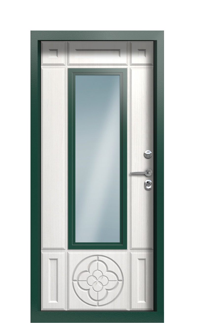 Дверь TermoPlus Decoline Белое дерево RAL 6005 стеклопакет карниз