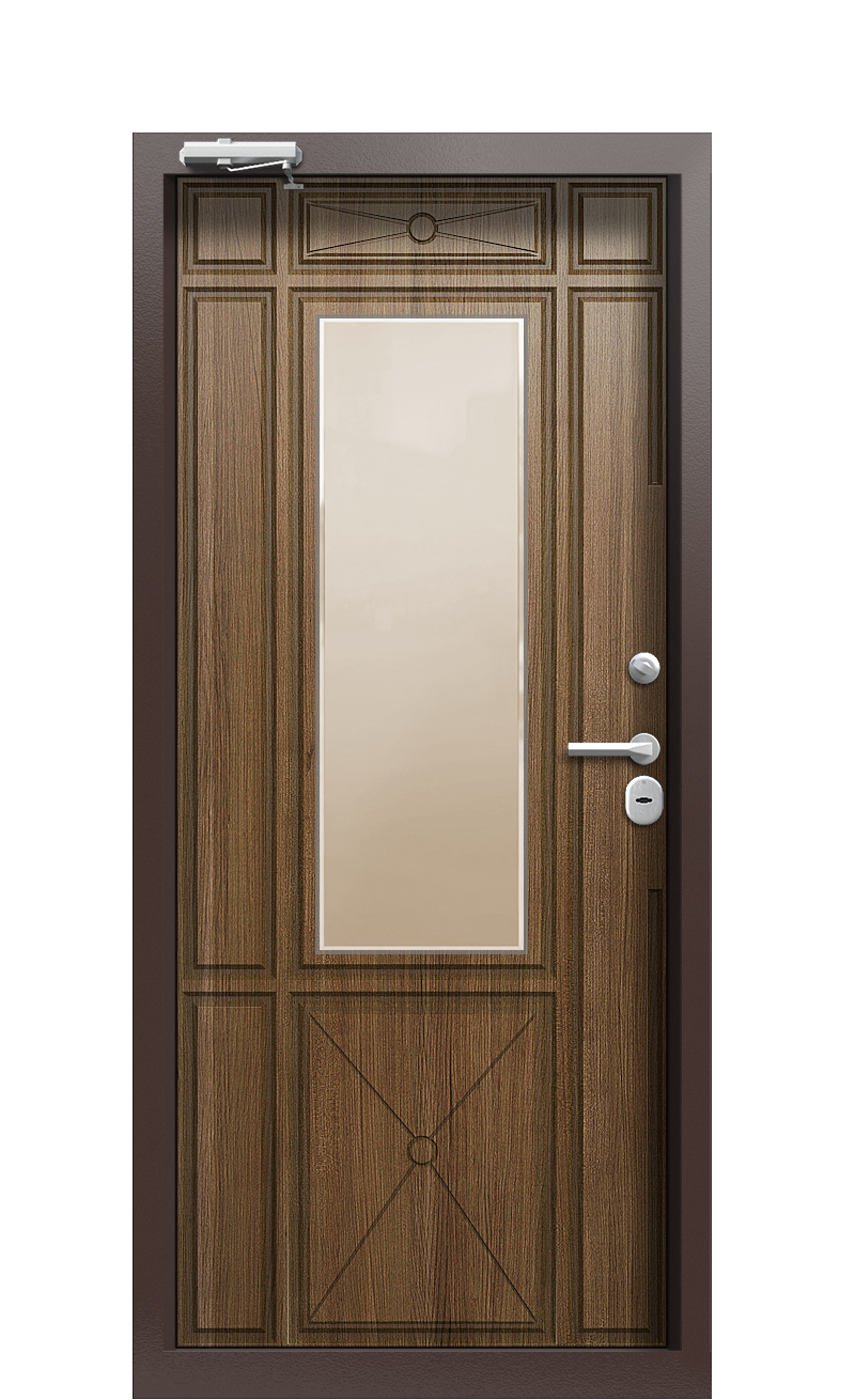 Входная группа в натуральных оттенках – беспроигрышное решение, отличающееся высокой универсальностью, в пользу чего говорит предназначенная для внешнего монтажа в частных домах дверь TermoPlus Ral 8017 Тик 525 с внутренним электродоводчиком. Оборудованная по последнему технологичному слову, эта модель сохраняет классические традиции в оформлении, получив элегантный карниз с фьюзингом по фасаду и изящную фрезеровку с отливающей бронзой зеркальной вставкой изнутри.При этом вам не придется предпринимать особых усилий для ухода за всем этим внешним великолепием – настолько качественной и износостойкой является отделка изделия в общем цвете и дизайне Ral 8017 Тик 525. Для этого снаружи производителем использовалась антикоррозийная обработка для защиты терморазрывного основания от разрушения, тогда как для «изнанки» была применена корабельная фанера премиум-класса, отличающаяся максимальной влагостойкостью.В качестве системы безопасности двери TermoPlus Ral 8017 Тик 525 производитель предусмотрел замок Securemme. Этот итальянский механизм зарекомендовал себя, как самый надежный, поэтому с ним вы будете чувствовать себя полностью защищенным.
