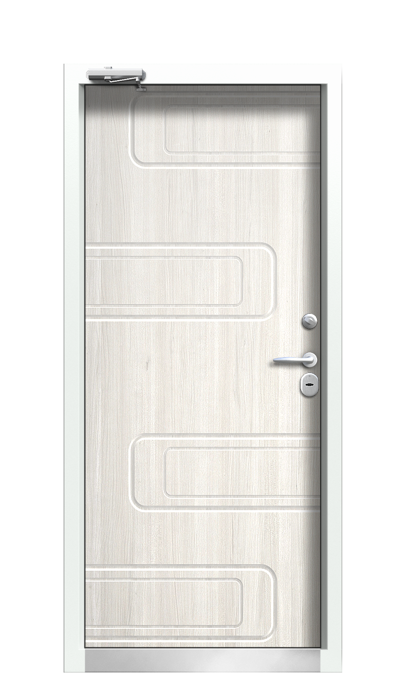Дверь TermoPlus Ral 9003 Белая эмаль 515 с эстетичным оформлением в светлых тонах решает не только декоративные, но и теплосберегающие задачи. Она идеально подходит для установки в коттеджах и частных домах.В полотне и коробе, кроме многослойного утеплителя, содержится термический разрыв. Это слой материала с низкой теплопроводящей способностью, который разделяет наружный и внутренний лист металла. Благодаря этому в помещение не проникает холодный воздух, полотно не промерзает, не покрывается инеем и льдом.Итальянские замки Securemme с сувальдным механизмом также не подвержены промерзанию. Они успешно справляются с защитой здания от взлома даже в экстремальных погодных условиях.Отделка створки с наружной стороны выполнена гладким металлом в цвете Ral 9003 (Сигнальный белый). В качестве декора используется резной багет. Внутренняя сторона обшита натуральными панелями Woodline из древесины дуба и африканского дерева в цвете Белая эмаль.Нержавеющий порог в нижней части конструкции защищает от коррозии.Купить входные металлические двери с терморазрывом можно на фабрике Termo. Смотрите готовые решения в каталоге или предлагайте собственный индивидуальный проект.