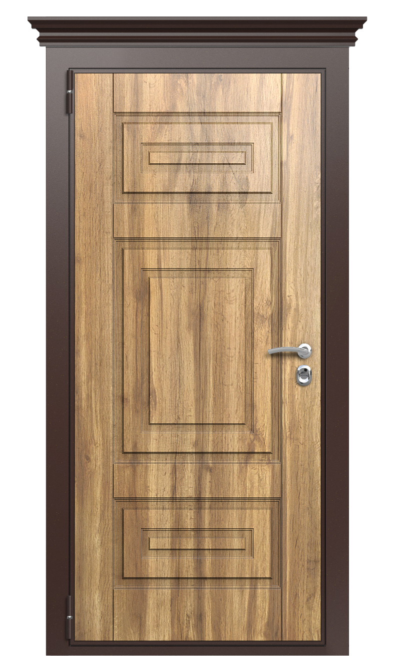 Дверь TermoWood Decoline Греческий платан B004 Грецкий орех B003 Tobacco Карниз левая 950 с эффектным дизайном создает впечатление натурального массива из дерева. Внешняя привлекательность дополняется высокими тепло- и шумоизоляционными показателями. Для сохранения тепла в помещении и поддержания оптимального микроклимата используется технология терморазрыва полотна и короба. Это прослойка материала с низкой теплопроводимостью, разграничивающая холодный и теплый воздух. Установив такую модель в доме иди коттедже, вы забудете о проблеме промерзания или обледенения двери.Высокая степень защиты от взлома и вскрытия обеспечена сувальдным замком турецкого бренда Кале. Изнутри можно запереться ночной задвижкой.Для обшивки использованы панели Decoline Premium, устойчивые в влаге, выцветанию и нагреву. Их поверхность имеет текстуру под древесный срез. Наружная створка окрашена в цвет Греческий платан, внутренняя – Грецкий орех. Декоративные узоры нанесены фрезерованием. Вверху установлен аккуратный карниз.Теплую дверь можно заказать на фабрике Термо, выбрав подходящий дизайн из каталога. Мы ждем вас в фирменных салонах, расположенных в крупных городах России.