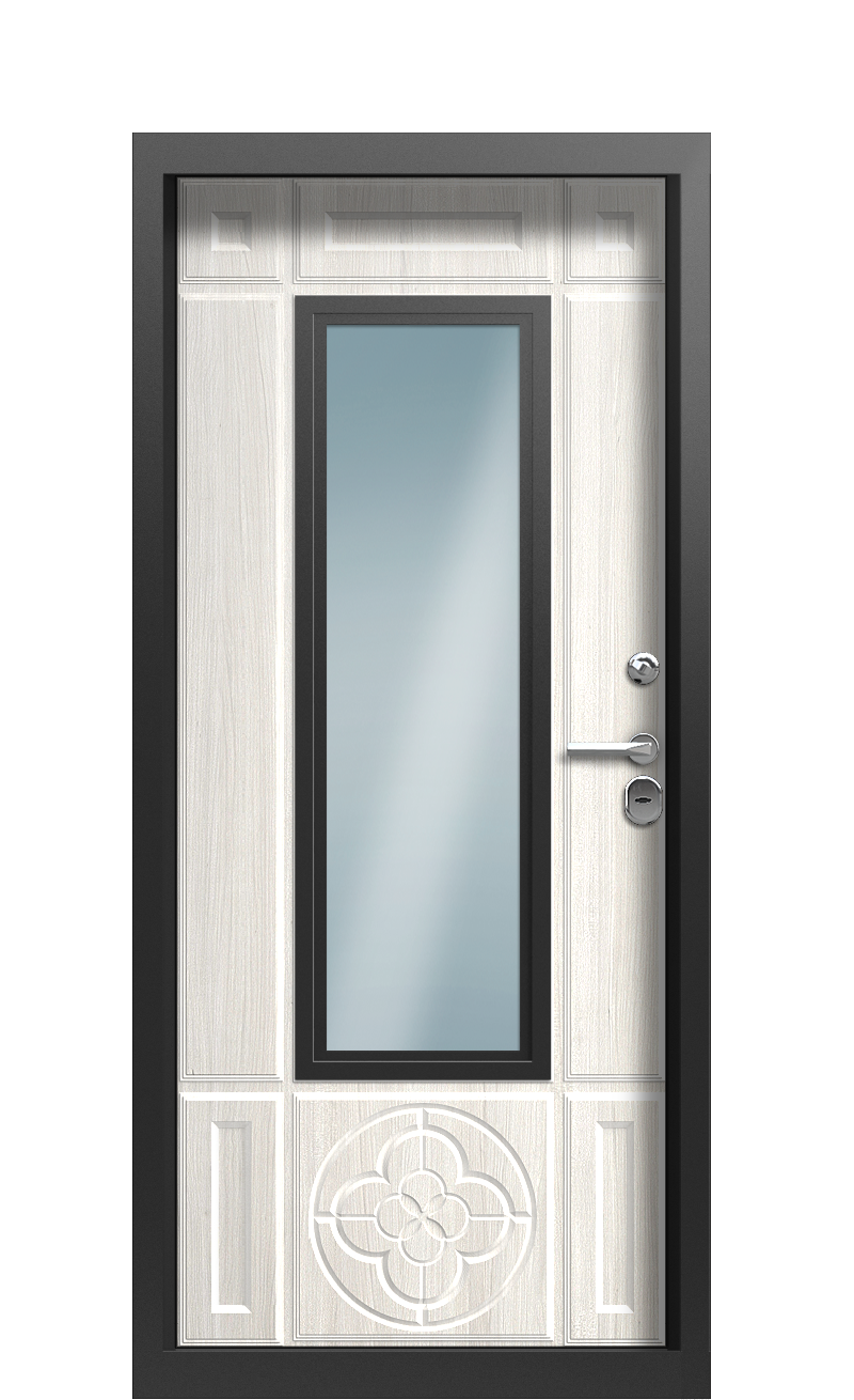 Дверь TermoWood test999 с эффектным дизайном– лучшее решение для тех, кто ценит практичность и эстетичность. В этой модели реализованы современные технологии теплосбережения. Модель удерживает тепло внутри и не позволяет холодному воздуху проникать в помещение благодаря терморазрыву. Это прослойка материала с низкой теплопроводностью (пробковый лист, 8 мм), которая разделяет внешний и внутренний листы металла. Благодаря этому не возникают мостики холода, дверь не промерзает и не покрывается льдом.Надежная защита от взлома и проникновения злоумышленников обеспечивается качественными сувальдными замками итальянского бренда Securemme. Они также не подвержены промерзанию.Обшивка выполнена панелями Woodline из натуральной древесины. Они производятся в Италии по особой технологии, аналогов которой в России нет. Внешняя сторона окрашена в цвет Серый антрацит, внутренняя – Белая эмаль. Вверху установлен декоративный карниз. Обе стороны украшены прямоугольным прозрачным стеклом. Фабрика Термо изготавливает качественные термодвери с разными габаритами и вариантами дизайна. Проконсультируем по выбору, расскажем обо всех преимуществах нашей продукции.