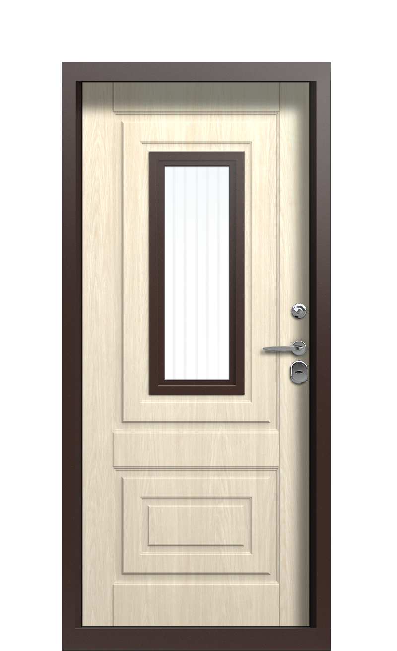 Устойчивость к действию холода эта модель обеспечивает за счет теплоизоляции, состоящей из 7 слоев. Также в ней имеется терморазрыв, состоящий из пробкового листа. От взлома эта модель входной двери защищена при помощи наличия в ее конструкции стальных листов, имеющих толщину 2 мм.