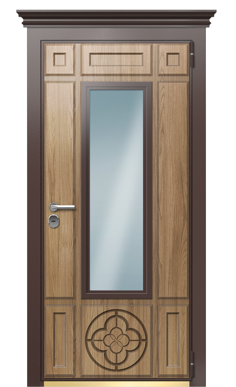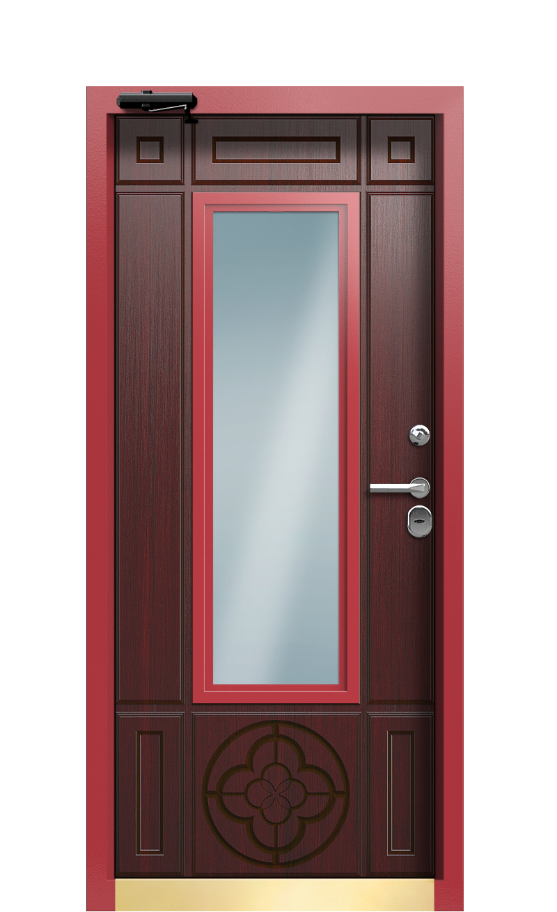 Дверь TermoWood Ral 8017 Грецкий Орех 429 с эффектным дизайном и нестандартным цветовым оформлением украсит ваш дом или загородный коттедж. Кроме эстетичности, эта модель обладает и другими преимущества. Это высокие теплосберегающие возможности, надежная защита от взлома, хорошая звукоизоляция.В конструкции установлен терморазрыв. Это не просто утеплитель, а материал с низкой теплопроводимостью, который выравнивает разницу между наружной и внутренней температурой. Результат – сохранение тепла в помещении даже в самые сильные морозы, отсутствие наледи на поверхности, устойчивость к промерзанию.За безопасность отвечают два сувальдных замка итальянского бренда Securemme. В сочетании с тремя контурами притвора и ночной задвижкой они создают препятствие для проникновения злоумышленников.Снаружи створка обшита панелями Decoline Premium с рельефной поверхностью под натуральный древесный рисунок в цвете Грецкий орех. Внутренняя сторона оформлена элитными панелями Woodline, которые производятся из древесины дуба и африканского дерева в Италии. Цвет – Темно-красный. В верхней части установлен аккуратный карниз. С обеих сторон присутствует декоративное прозрачное стекло в виде продолговатого прямоугольника.Фабрика Термо изготовит на заказ теплые двери из долговечных материалов. Даем 3 года гарантии на нашу продукцию. Выполним замеры, доставку и монтаж.