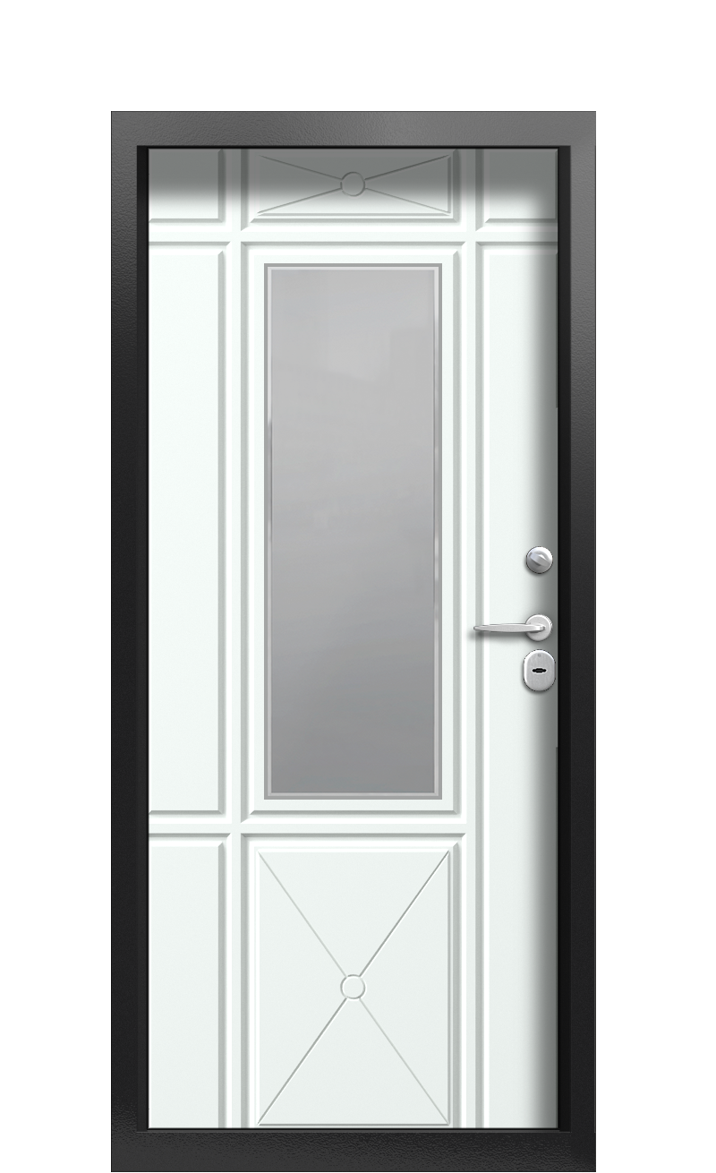 Дверь TermoWood Ral 9005 Securemme 997 с контрастным цветовым оформлением имеет специальную конструкцию, которая делает ее максимально устойчивой к низкой температуре и неблагоприятных погодным явлениям. Она содержит термический разрыв, который разграничивает холодную и теплую стороны металла, не позволяя им взаимодействовать. Таким образом в помещении сохраняется комфортный микроклимат.Эта модель комплектуется двумя итальянскими замками Securemme с сувальдным механизмом. Они надежны, просты в эксплуатации, имеют высокий класс взломостойкости. Для обшивки использованы панели Collori с матовым покрытием. Цвет внешней поверхности – Ral 9005 (Черный янтарь), внутренней – Ral 9003 (Сигнальный белый). Изнутри в центре установлено прямоугольное зеркало оттенка Графит. Декоративный узор выполнен фрезеровкой.Вы можете заказать качественную дверь с терморазрывом в одном из фирменных салонов фабрики Термо. Доставляем продукцию по всей России и в страны СНГ наземным транспортом.