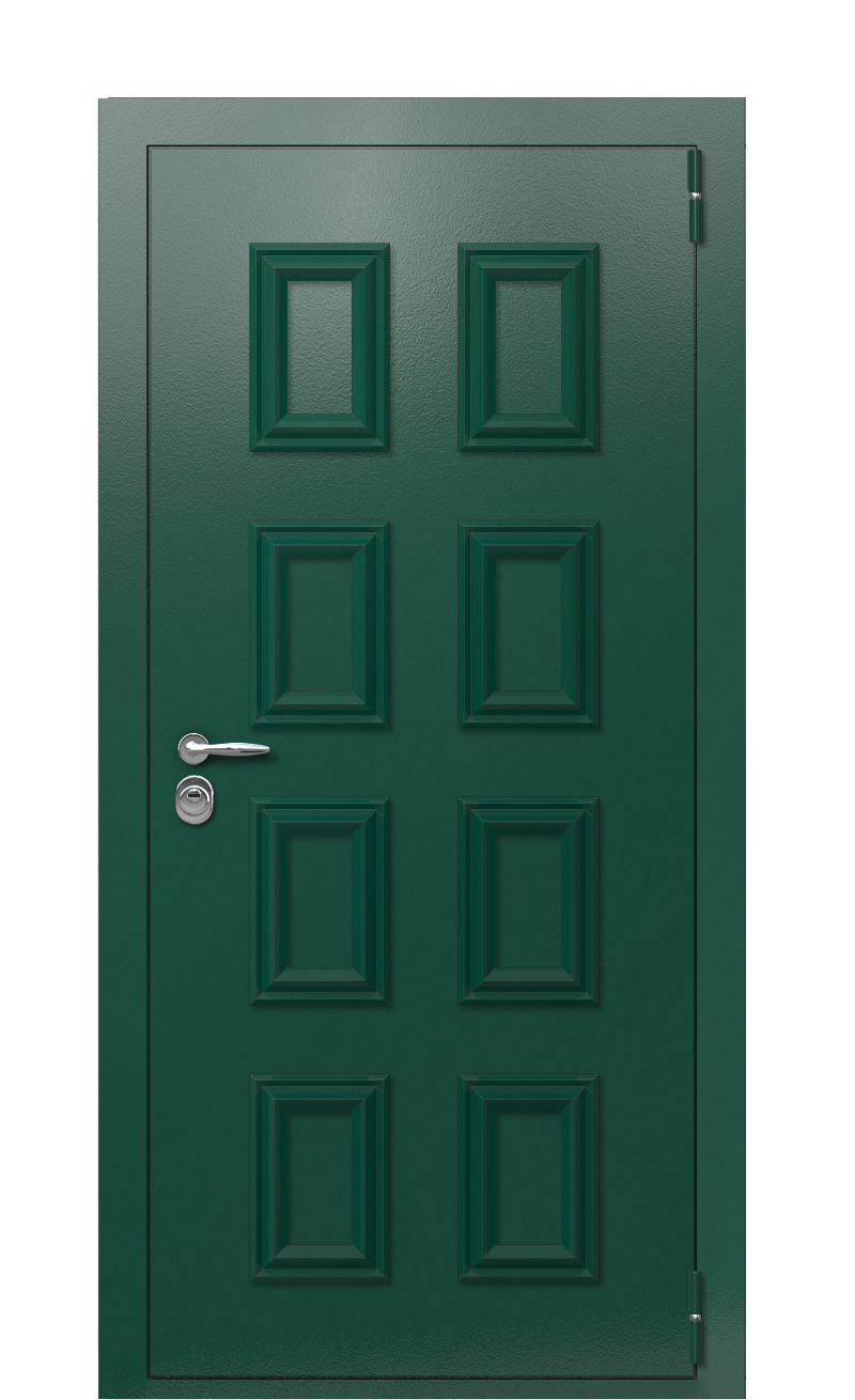 При этом не стоит переживать за сохранность внешнего вида модели, украшенной с фасадной стороны элегантной классической композицией из багетов. Двухслойное покрытие с антикоррозийным составом снаружи и изнутри делают дверь TermoLight Ral 6005 Kale 1361 практически неуязвимой к внешней среде, в результате чего ей даже со временем не грозит и ржавчина, ни выгорание.
