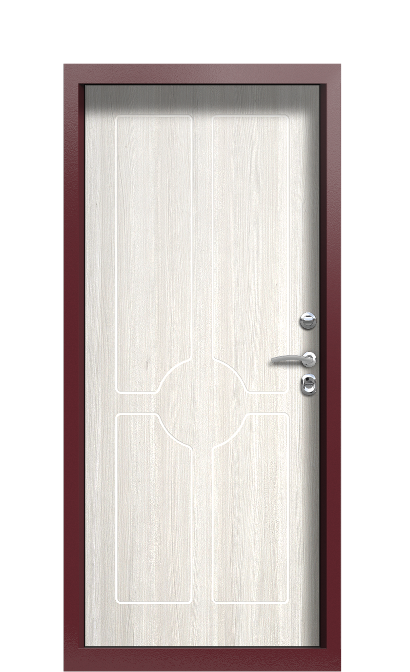 Комфорт и качество TermoPlus Ral 3005 – точно про внутренние панели Woodline. Это технология производства совмещает лучшие итальянские мотивы с использованием прочной структуры волокнистого африканского дуба. Готовая панель имеет высокую прочность, а также не пропускает внутрь холодный воздух. Для внешней отделки использовалась металлическая основа с дополнительным слоем цинковой защиты. Она позволяет минимизировать изменения оттенка Белая эмаль 1452 из-за постоянных перепадов температуры и прямых солнечных лучей, а также упрощает повседневный уход за дверью.