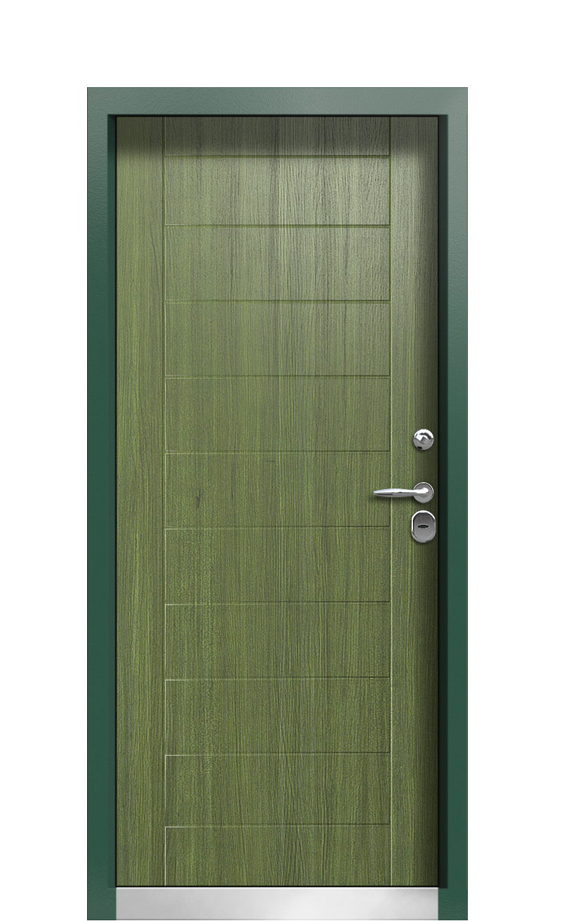 К тому же, этому декору ничего не угрожает, поскольку с наружной стороны была использована тройная обработка против коррозии и других негативных проявлений. С обратной стороны было предусмотрено совершенно другое оформление в виде тонкой фрезеровки на корабельных панелях итальянского качества, в точности передающих эффект натурального массива. Довершает общую композицию стильное цветовое сочетание Ral 9005 Тёмно зелёное 128.