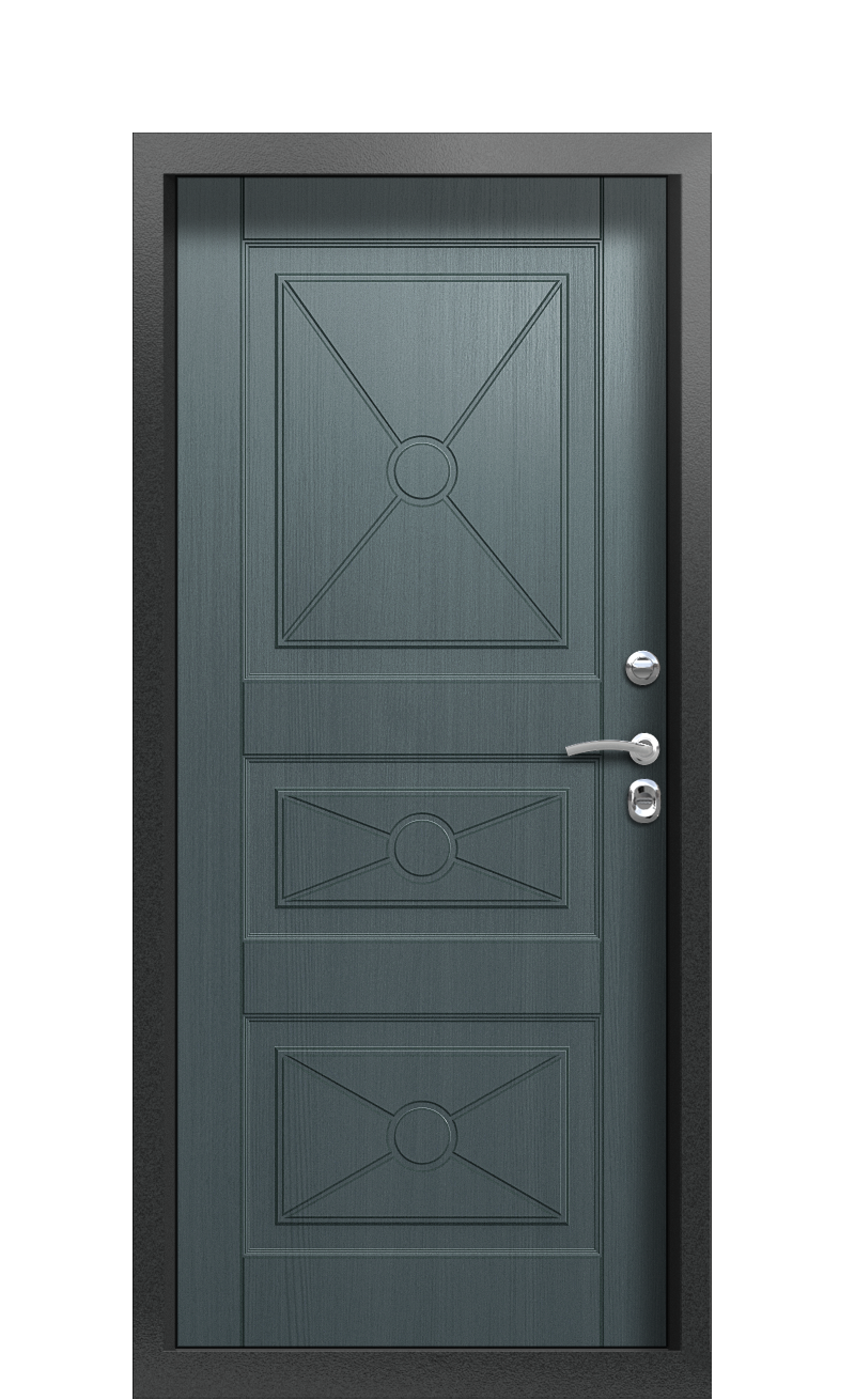 Толщина дверного полотна составляет 103 мм. Теплоизоляция в нем состоит из 5 слоев, которые делают эту модель очень устойчивой к действию мороза, появлению конденсата и потере тепла. Уплотнитель KIM ТЕС производства Германии обеспечивает повышенную звукоизоляцию и отсутствие сквозняков. Плотное примыкание двери к дверному коробу обеспечивает металлический эксцентрик. Навешивается дверное полотно в этой модели на итальянские петли Combiarialdo, которые отличаются повышенной прочностью. Размер этой двери составляет 880х2050 мм. Она имеет правое открывание.
