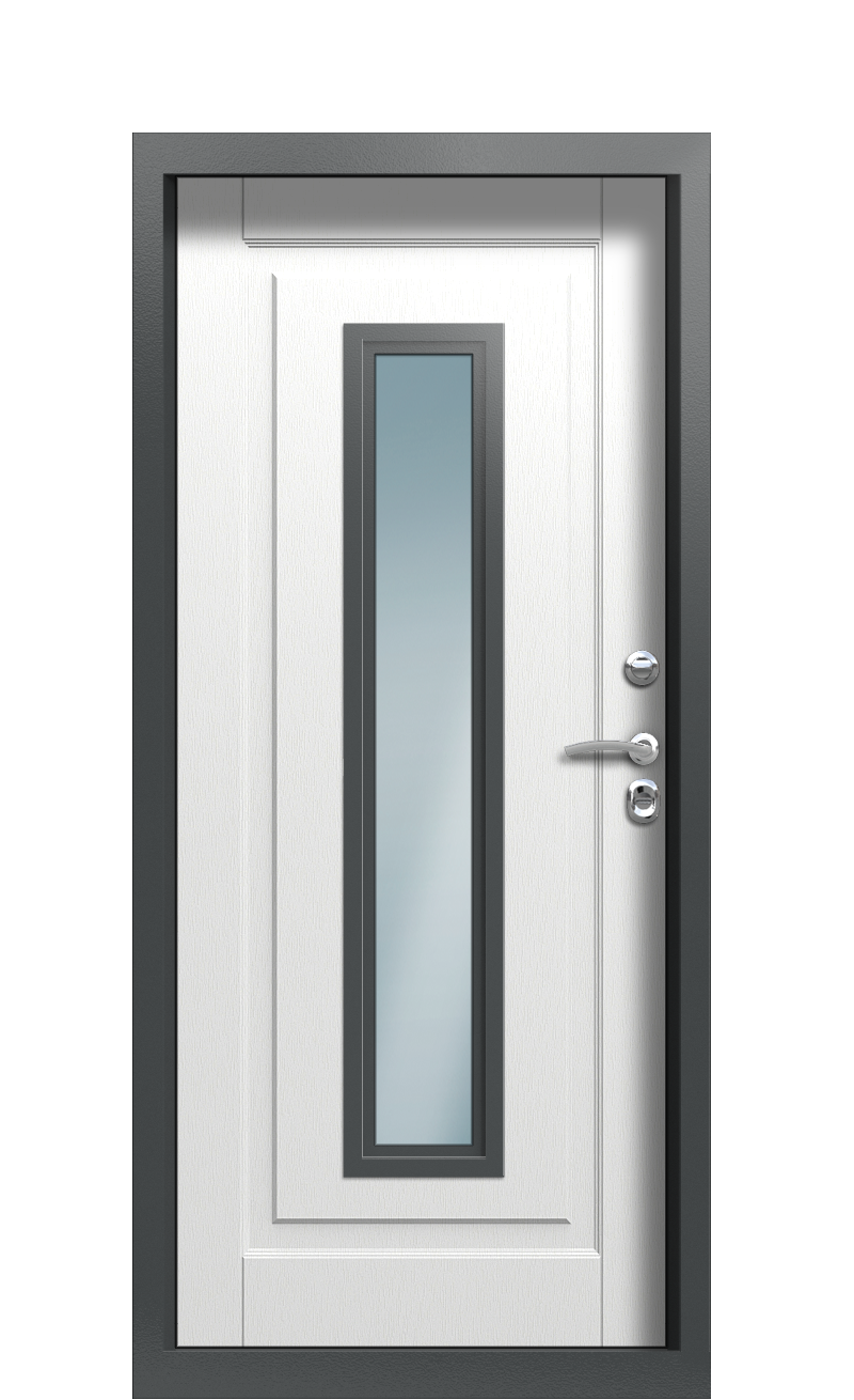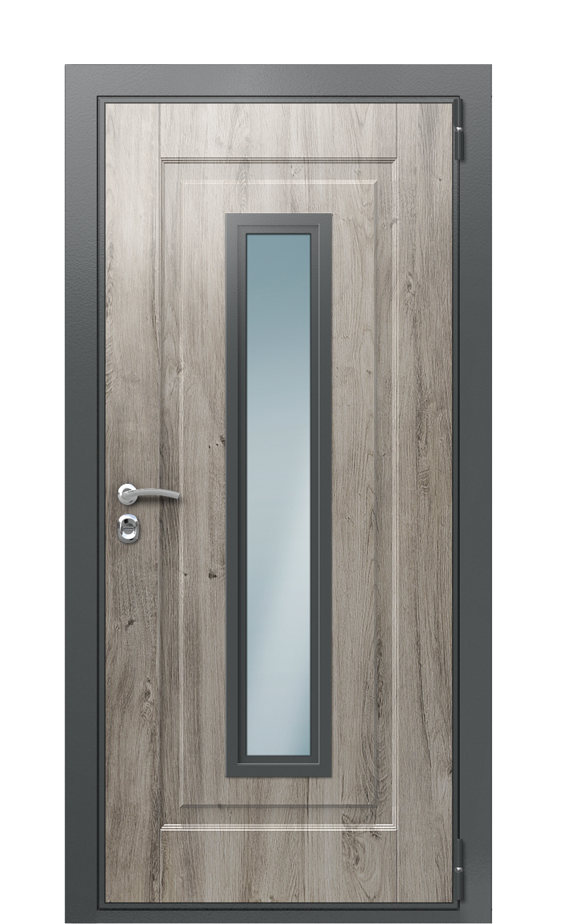 Дверь TermoWood Ral 7043 Milk 1437 с индивидуальным оформлением станет изюминкой интерьера и экстерьера вашего дома. Благородные цвета и рельеф под дерево будут уместными в любом дизайне.Помимо внешней привлекательности, такая модель характеризуется хорошей теплоэффективностью. В ее конструкции предусмотрен двойной термический разрыв – и в полотне, и в коробе. Он разделяет холодную наружную и внутреннюю теплую стороны металла, выравнивая разность температур. Благодаря этому дверь не промерзает, не покрывается льдом и конденсатом. Внутри помещения всегда поддерживается оптимальный микроклимат.Для обшивки использованы влагостойкие экологичные панели на основе плиты МДФ Decoline Premium и Decoline Classic. Цвет внешней стороны – Арктическая береза, внутренней – Милк. С обеих сторон установлено прозрачное остекление в виде прямоугольной узкой полосы, обрамленной контрастной рамкой. Декоративная решетка и узоры нанесены методом фрезерования.Заказать безопасную термодверь для вашего дома можно на фабрике Termo. Проконсультируйтесь по поводу выбора в одном из 200 фирменных салонов или по указанному номеру.