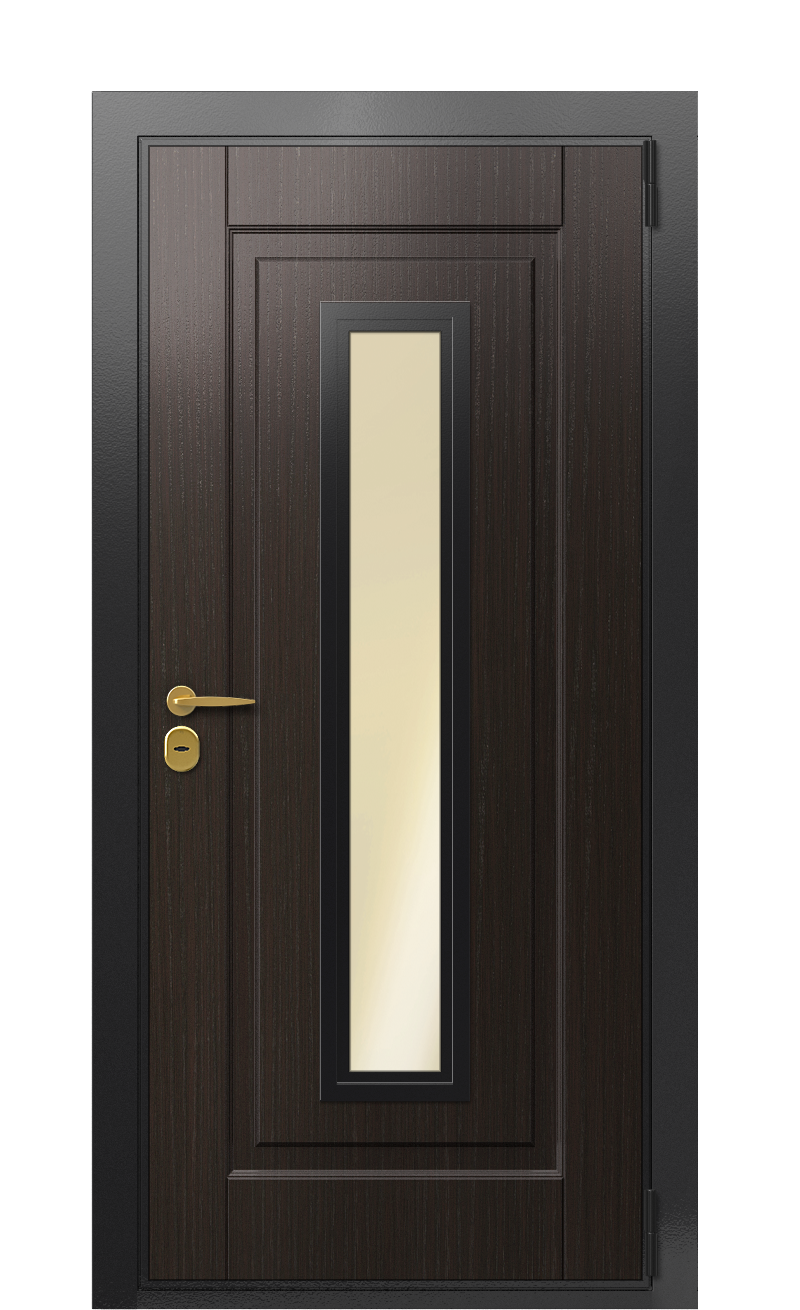 Дверь TermoWood Ral 9005 Grey matt 1438 с эффектным оформлением в темных тонах украсит ваш дом или загородный коттедж, а также защитит от холода и непрошенных гостей. Эта модель имеет особую конструкцию: в полотне и коробе содержится терморазрыв, который изолирует наружную холодную сторону металла от внутренней теплой. В результате отсутствуют мостики холода, полотно не промерзает и не покрывается льдом. Качественные утеплители задерживают тепло в помещении и дают звукоизолирующий эффект.Два сувальдных замка от турецкого бренда Кале противостоят взлому и вскрытию. Они просты в эксплуатации и гарантируют надежную защиту жильцов и имущества в круглосуточном режиме.Для обшивки использованы качественные влагостойкие панели Decoline Premium. Внешняя сторона окрашена в цвет Венге бонобо, внутренняя – в Grey matt. С обеих сторон в центре установлена продолговатая прямоугольная полоска остекления золотого оттенка.Фабрика Термо предлагает купить качественную термодверь из современных экологичных материалов. На весь ассортимент предоставляется гарантия 3 года.