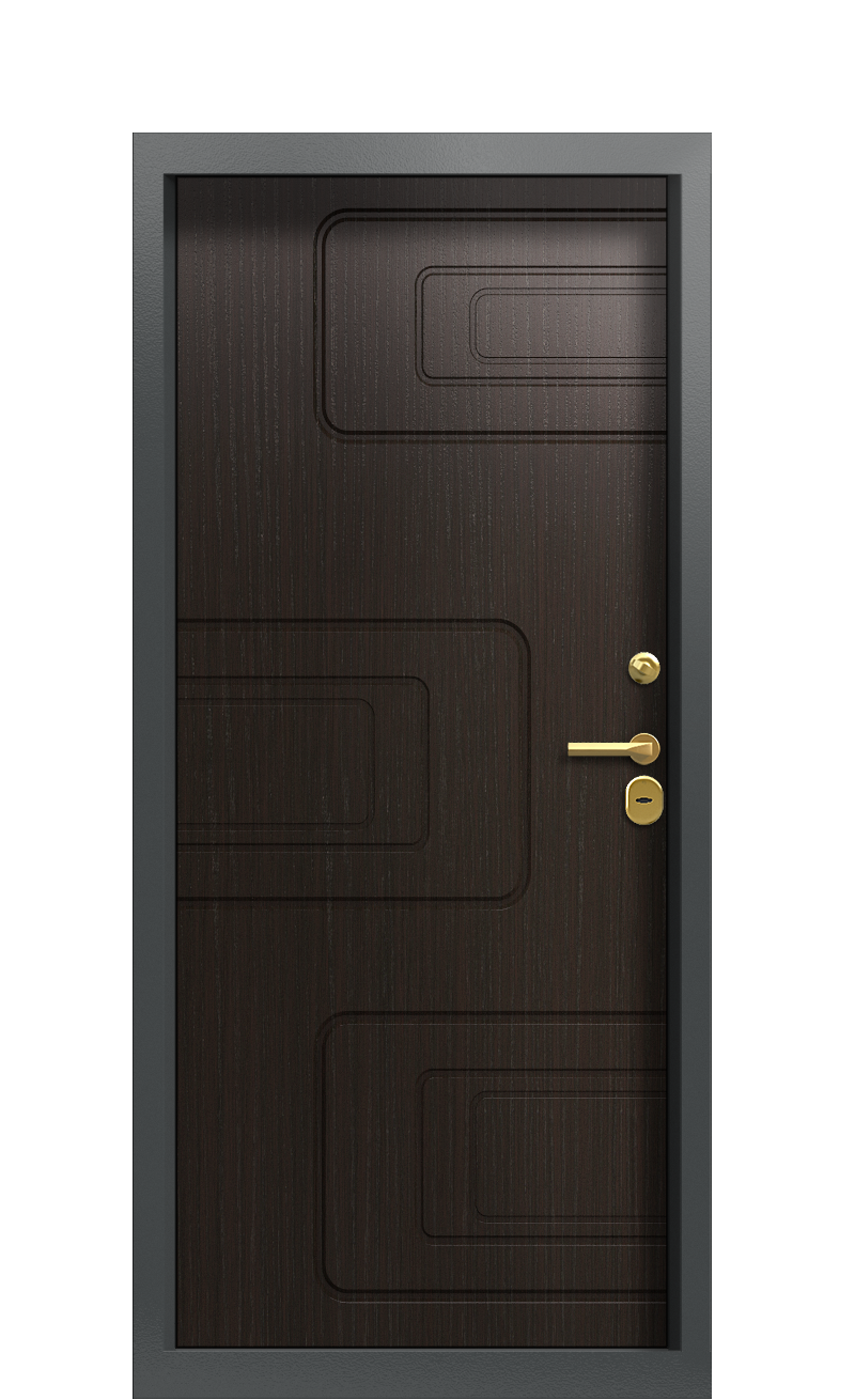 Если вы ищете входную группу, которая будет отличаться безупречным дизайном, премиальным качеством отделки и высоким классом безопасности, то обязательно обратите внимание на дверь TermoWood Ral 9005 Венге бонобо 1442, которая вряд ли оставит кого-то равнодушным. Получив эффектное черное окрашивание с фрезеровкой полотна и контрастирующей на его фоне золотой фурнитурой, это изделие способно сводить к нулю теплопотери в холодное время года.Этому способствует стальная основа изделия с 7 внутренними слоями трморазрыва, для обшивки которого использовалась премиальная МДФ-доска с ПВХ-пленкой. Обладая 3D-эффектом такое покрытие в точности передает дизайн изделия, попутно способствуя сохранности его базовых оттенков Ral 9005 Венге бонобо 1442.Еще один плюс – это замок Kale, который входная группа получила по умолчанию. Проверенный турецкий механизм делает дверь TermoWood Ral 9005 Венге бонобо 1442 по-настоящему выносливой и безопасной, что можно будет прочувствовать сразу после ее установки.