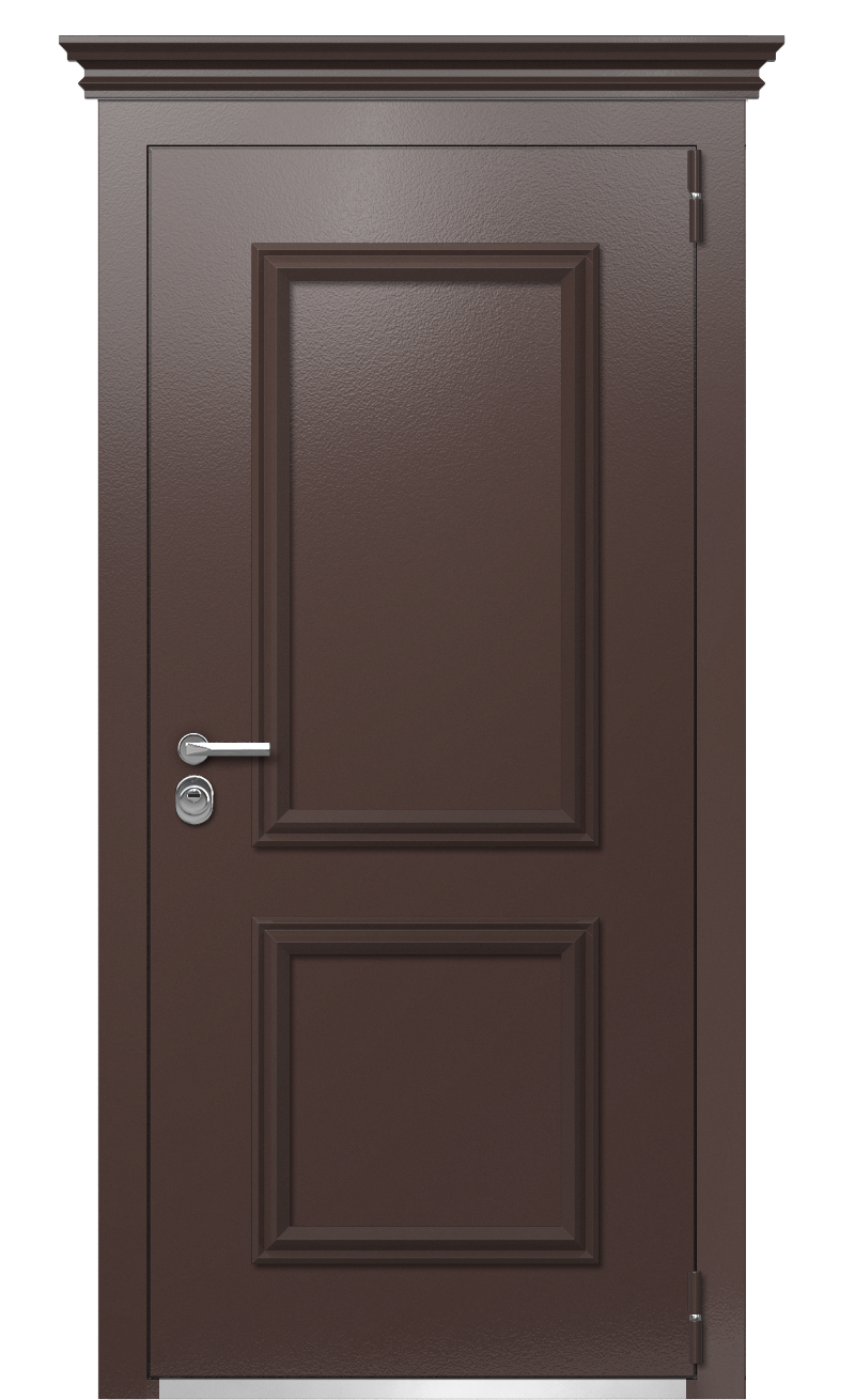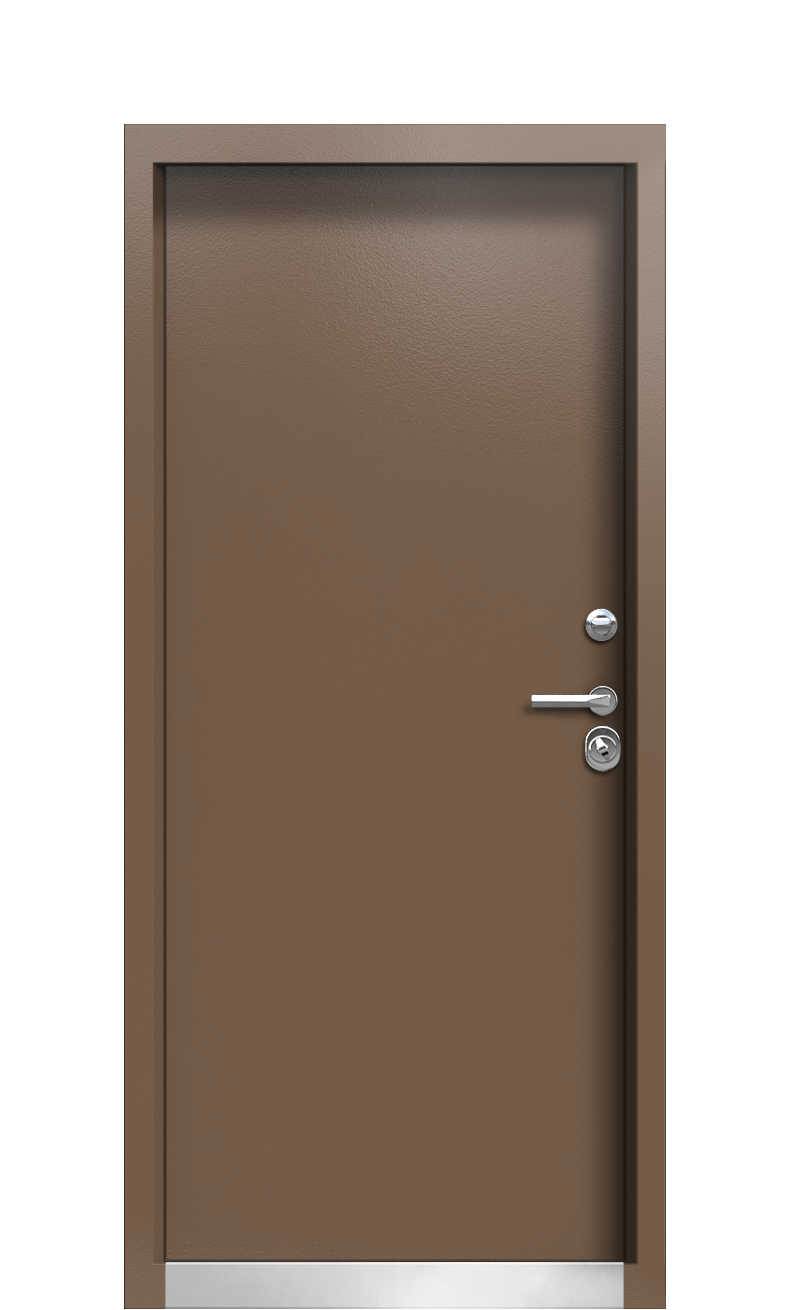 Изнутри и снаружи эта дверь имеет отделку из металла. Внешняя часть окрашена в Шоколадно-коричневый цвет, а внутренняя — в Бледно-коричневый цвет. Дополнительная защита металла, из которого сделаны двери, от внешних воздействий, обеспечивается при помощи антикоррозийного покрытия и цинкосодержащего грунта.