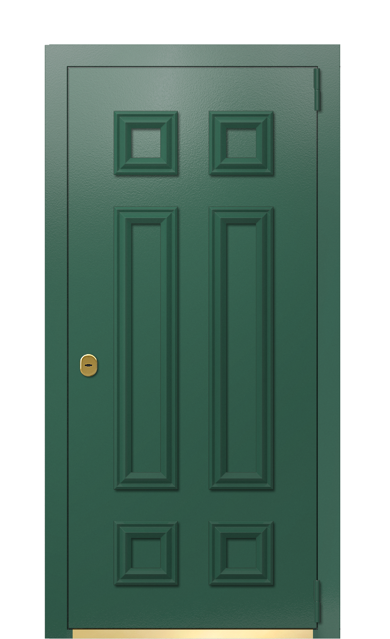 Дверь Termo Ral 6028 Securemme 1050 с элегантным дизайном идеально подойдет для вашего дома или загородного коттеджа. Она удерживает максимум тепла в помещении, не позволяя холодному воздуху проникать внутрь. Внутри установлен терморазрыв – слой пробки между внутренним и наружным листами металла. Этот элемент предотвращает образование мостиков холода, не допускает промерзания и обледенения. Конструкция содержит многослойный утеплитель, помещенный в полотно и короб.Итальянские замки Securemme гарантируют круглосуточную безопасность жильцов и имущества. Они устойчивы к различным приемам, которые предпринимают злоумышленники.Наружная и внутренняя сторона двери отделаны качественным гладким металлом, устойчивым к коррозии. Внешняя поверхность окрашена полимерной краской в цвет Ral 6028 (Сосновый зеленый) и декорирована резными багетами. Изнутри поверхность окрашена в цвет Patina. В нижней части установлен нержавеющий порог в золотом оттенке.Фабрика Термо изготавливает качественные термодвери с разными габаритами и вариантами дизайна. Приглашаем в нашим фирменные салоны, где можно ознакомиться с образцами продукции.