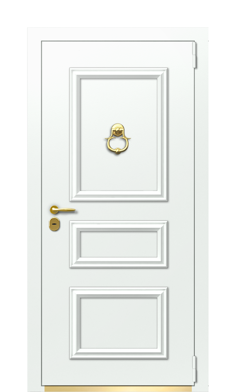 Если и выбирать белоснежную входную группу, то однозначно дверь Termo Ral 9003 Securemme 1126 – эффектную модель, которая может похвастаться безупречным качеством и износостойкостью отделки, несмотря на свое светлое оформление. Трудно поверить, но за всем этим великолепием скрывается стальной каркас с 5-слойной термозащитой, сводящей к нулю тепловые потери в холодное время года.Порадует покупателей и декоративное оформление изделия с его багетами, нержавеющим порожком и фурнитурой с элегантным золотым покрытием. Чего только стоит винтажный молоток, который создает очаровательный в своем романтизме эффект старины. При этом вы можете рассчитывать на полную сохранность покрытия, прошедшего комплексную антикоррозийную обработку, тогда как за общую безопасность отвечает итальянский замок от ведущего бренда. В этом плане сочетание Ral 9003 Securemme 1126 по праву считается идеальным.Еще одно преимущество изделия сводится к его высококлассной комплектации, Так, приобретая дверь Termo Ral 9003 Securemme 1126, вы получаете все необходимое – ручки, петли, декор. Это значит, что покупателю не придется дополнительно тратить средства на защиту, уровень которой и без того окажется максимальным.