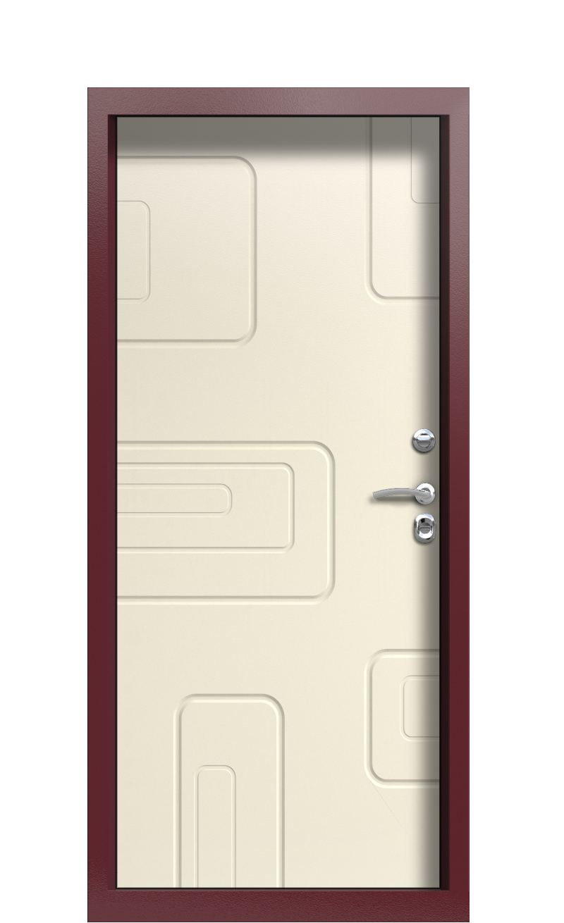 Модель входной двери TermoPlus Ral 3005 Слоновая кость 1011 стоит недорого и имеет стильный вид. Снаружи она отделана металлом, окрашенным в Винно-красный цвет. Внутри эта модель дверей отделана панелью Collori Слоновая кость и украшена фрезеровкой.