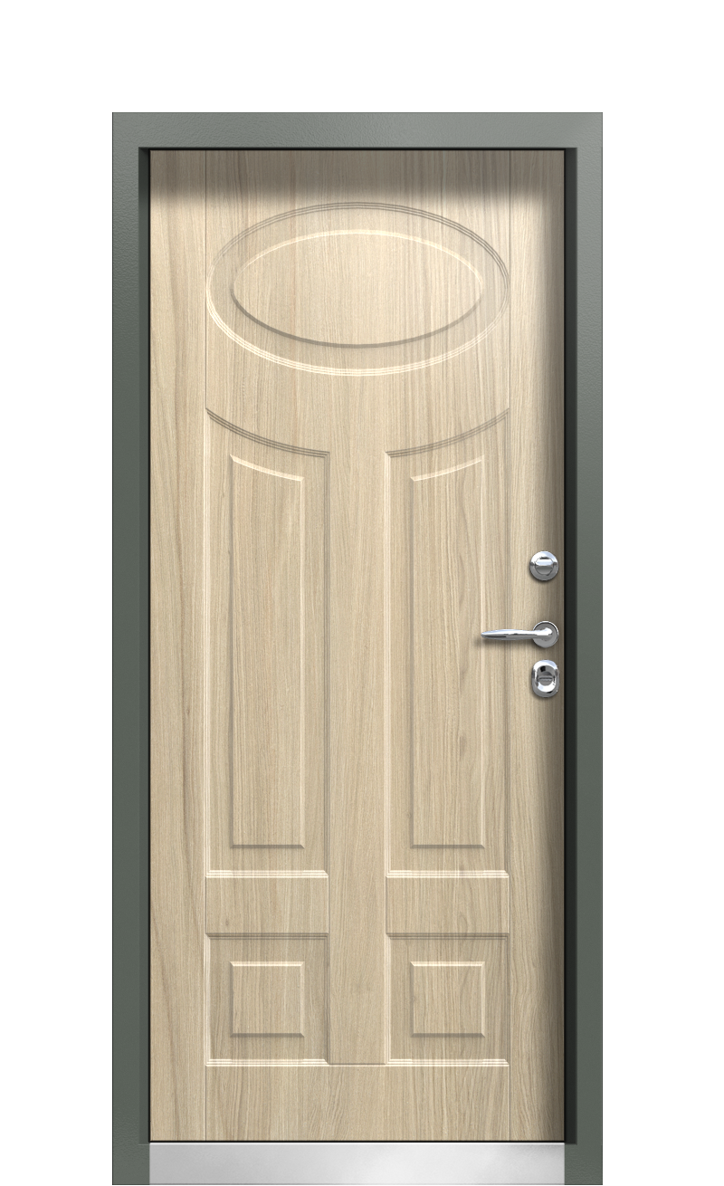 Помимо красивого внешнего вида, дверь обладает многими преимуществами. Чтобы создать прочное основание, было выбрано два основных материала: для внешней отделки использовался трехслойная металлическая панель с покрытием эмалью. Она помогает защитить цвет от выгорания, а также продлевает цикл жизни материала. Для внутреннего оформления использовались панели Decoline Premium – влагостойкая панель МДФ толщиной до 16 мм с покрытием из PVC (ПВХ). Она способна выдерживать высокие нагрузки, а также не требует постоянного ухода.