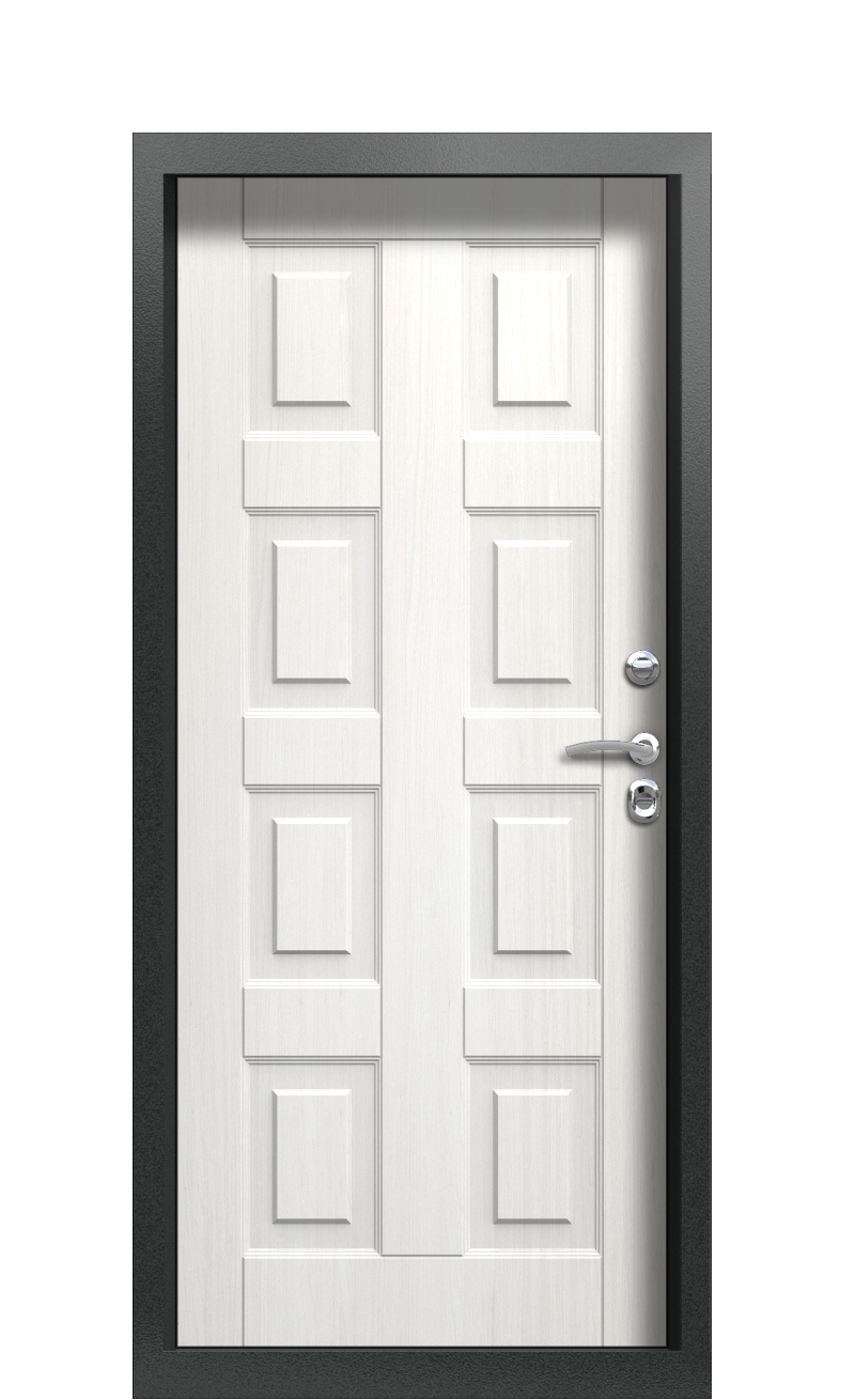 За защиту от злоумышленников отвечает турецкий замок Kale с цилиндром сувальдного типа, в комплекте к которому прилагается ночная задвижка из 1,5-миллиметровой холоднокатанной стали. Придется по нраву новоиспеченным хозяевам двери TermoPlus Silver Белое Дерево F002 10 и ее дизайнерское оформление – стильное в своей аскетичности снаружи и в виде классической «шоколадной плитки» белоснежного цвета внутри.