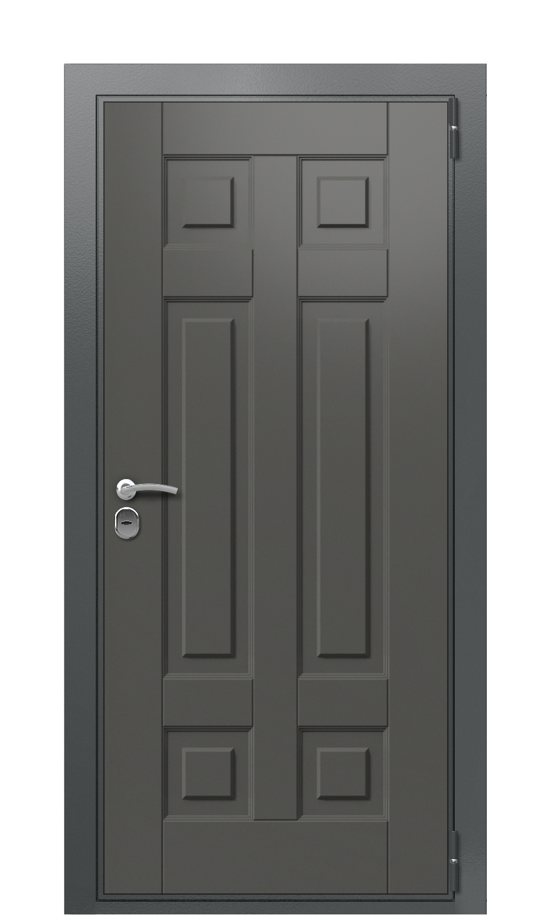 Дверь TermoWood Ral 7043 Черный гранит 1025 с индивидуальным дизайном в темных тонах надежно защищает помещение от холода и несанкционированного вскрытия. При производстве учитывались требования к сохранению тепла даже в самых сложных климатических условиях. В конструкции установлен терморазрыв, нейтрализующий разницу внешней и внутренней температуры. Полотно и короб сдержат многослойное утепление, которое также обладает хорошими звукоизолирующими свойствами.Два сувальдных замка Securemme защищают помещение от взлома и вскрытия. Изнутри можно закрыться ночной задвижкой.Внешняя сторона обшита панелями Decoline Premium с поверхностью, устойчивой к выцветанию. Цвет – Grey matt. Изнутри дверь отделана гладкими панелями Terma Premium, обладающими высокими показателями прочности и твердости. Покрытие имеет пантографический рисунок в виде текстуры натурального камня. Цвет – Черный гранит.Фабрика Термо предлагает качественные входные двери с терморазрывом. Предоставляем гарантию 3 года на свою продукцию. Доставим заказ в любой город России и в страны СНГ.
