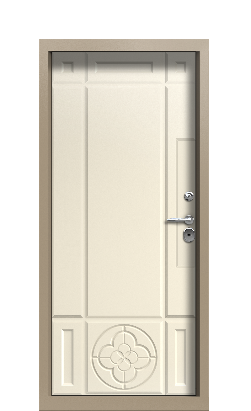 Светлые оттенки всегда отлично подчеркивали яркую текстуру дерева, поэтому входная дверь TermoPlus Ral 1019 Слоновая кость 1223 точно станет прекрасным вариантом для вашего дома. В основу дизайна вошли контрастные элементы, которые создают живую игру акцентами, поэтому внимание всегда будет на вашей двери. На внутренней стороне TermoPlus Ral 1019 Слоновая кость 1223 простой минималистичный дизайн с использованием пыльного бежевого оттенка. Внутренняя сторона удивляет своим дизайном: на холст цвета слоновой кости были добавлены резные элементы, которые подчеркивают фактуру и создают дополнительное ударение на нижней части двери, что помогает визуально расширить пространство и сделать потолок выше.