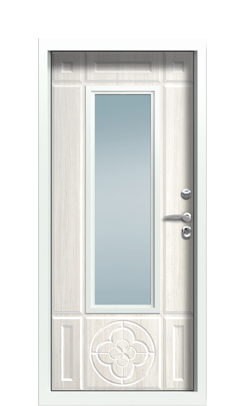 Двухсторонняя отделка и дизайн двери TermoPlus Ral 9003 Белая эмаль 1203 позволяет максимально органично вписывать ее в загородный дом, оформленный в неоклассическом стиле. При этом вы можете рассчитывать на тепло и уют, поскольку построенная на непробиваемом терморазрывном 5-слойном полотне модель обладает выраженными изоляционными качествами. Для отделки украшенного большой зеркальной вставкой изделия производителем были использованы сразу два вида покрытия – нанесенного в три слоя антикоррозийного по идеально ровному фасаду и обшивки корабельной фанерой с обратной стороны, получившей красивую фрезеровку. В итоге удастся сохранить не только целостность металлического основания, но и свежесть его вешней покраски Ral 9003 Белая эмаль 1203.Радует и высокий уровень безопасности входной группы, обеспечить который удалось за счет одного из самых надежных механизмов Kale (Турция). С ним, и с прочнейшей ночной задвижкой из металла, дверь TermoPlus Ral 9003 Белая эмаль 1203 будет стоять на страже вашего покоя, даря ощущение полного уюта и безопасности.
