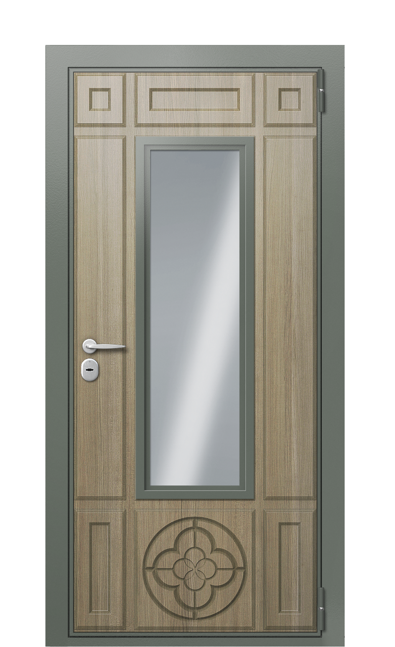 Оформленная в самых трендовых оттенках серо-бежевой палитры с фрезеровкой, зеркалами и эффектными контрастирующими между собой элементами, дверь TermoWood Ral 7009 Пепельный 1206 заслуживает особого внимания уже благодаря только одному своему внешнему виду. При этом изделие буквально излучает добротность, получив премиальные материалы отделки с натуральным составом и крепкий стальной каркас с несколькими теплоизоляционными слоями, что делает ее пригодной для внешнего монтажа.Так, получив обшивку толстостенной корабельной фанерой, изготовленной на основе таких ценных пород, как дуб и сейба, эта модель прослужит долгие годы, не теряя декоративности своего покрытия даже со временем. Этому способствует и специальная пропитка на масляной основе, в состав которой был по умолчанию включен базовый пигмент Ral 7009 Пепельный 1206.Еще одно преимущество модели заключается в ее комплектации надежным механическим замковым устройством Kale. К нему же прилагается ночная задвижка и все остальные комплектующие, необходимые для полноценной эксплуатации входной группы, которые дверь TermoWood Ral 7009 Пепельный 1206 получила по умолчанию.