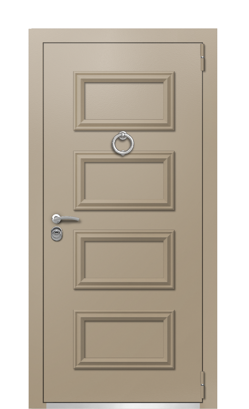 Классическая дверь Termo Ral 1019 Ral 8025 53, получившая оформление в теплых тонах, создает ощущение спокойствия и уюта. И возникает оно отнюдь не случайно, ведь за нежным пастельным фасадом скрывается непробиваемое металлическое полотно с 5 слоями теплоизоляции общей толщиной в 104 мм.