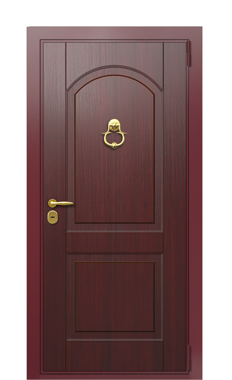 Входная дверь TermoWood Ral 3005 Тёмно-Красный 117 получила множество преимуществ, среди которых благородное цветовое оформление в пределах одной гаммы и элегантный дизайн с фрезеровкой и золотой фурнитурой. Установка такой входной группы позволяет решить еще один важный нюанс, который заключается в тепло и шумоизоляции, обеспечиваемой стальным полотном и герметичным уплотнителем.Особый упор был сделан на износостойкость изделия, для отделки которого были применены лучшие технологии и материалы. Среди них корабельная фанера, отличающаяся высоким влагозащитным уровнем и МДФ-обшивка с покраской эмалью, используемой в автопроме. Оба варианта обеспечивают надлежащую сохранность выбранных оттенков Ral 3005 Тёмно-Красный 117, которые не утратят свою декоративность и первоначальную глубину.Кроме того, входная группа получила полную комплектацию, которая включила в себя механический замок Securemme. Изготовленная в Италии, эта система безопасности делает дверь TermoWood Ral 3005 Тёмно-Красный 117 неуязвимой к взлому, даря хозяевам ощущение полной безопасности и приватности.