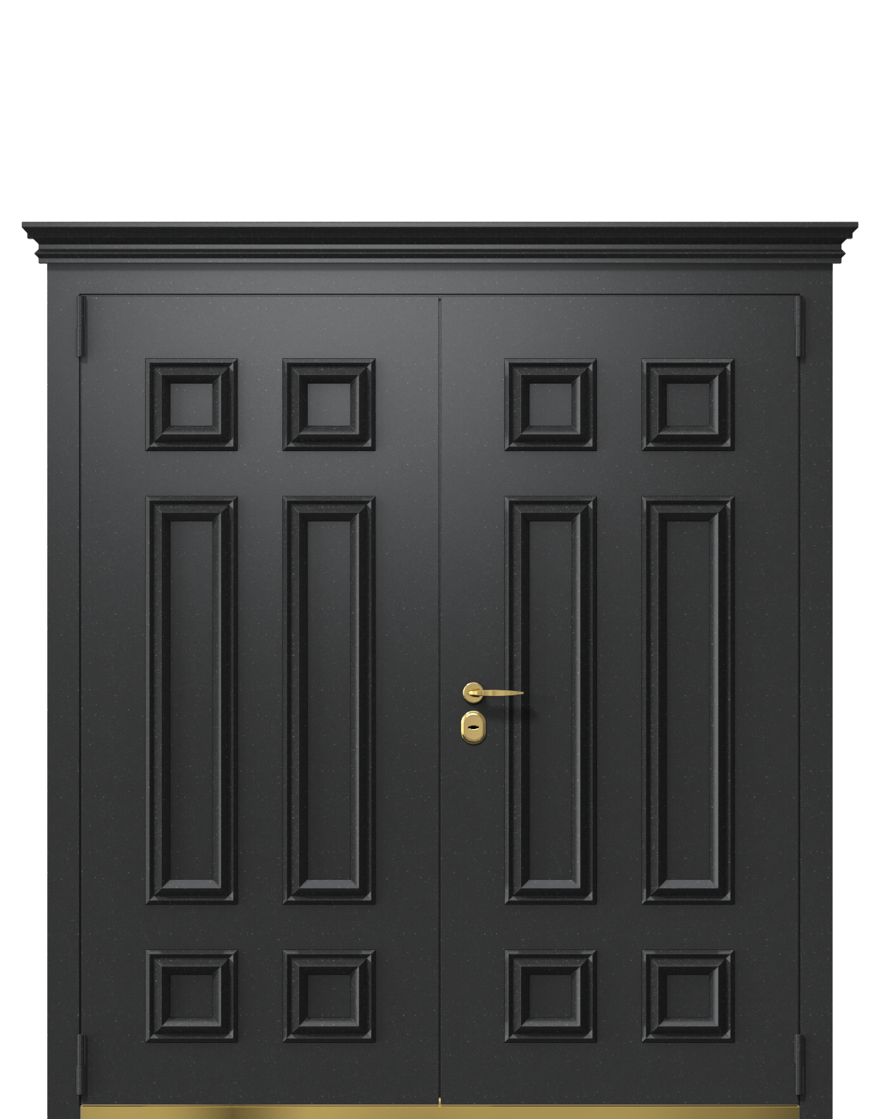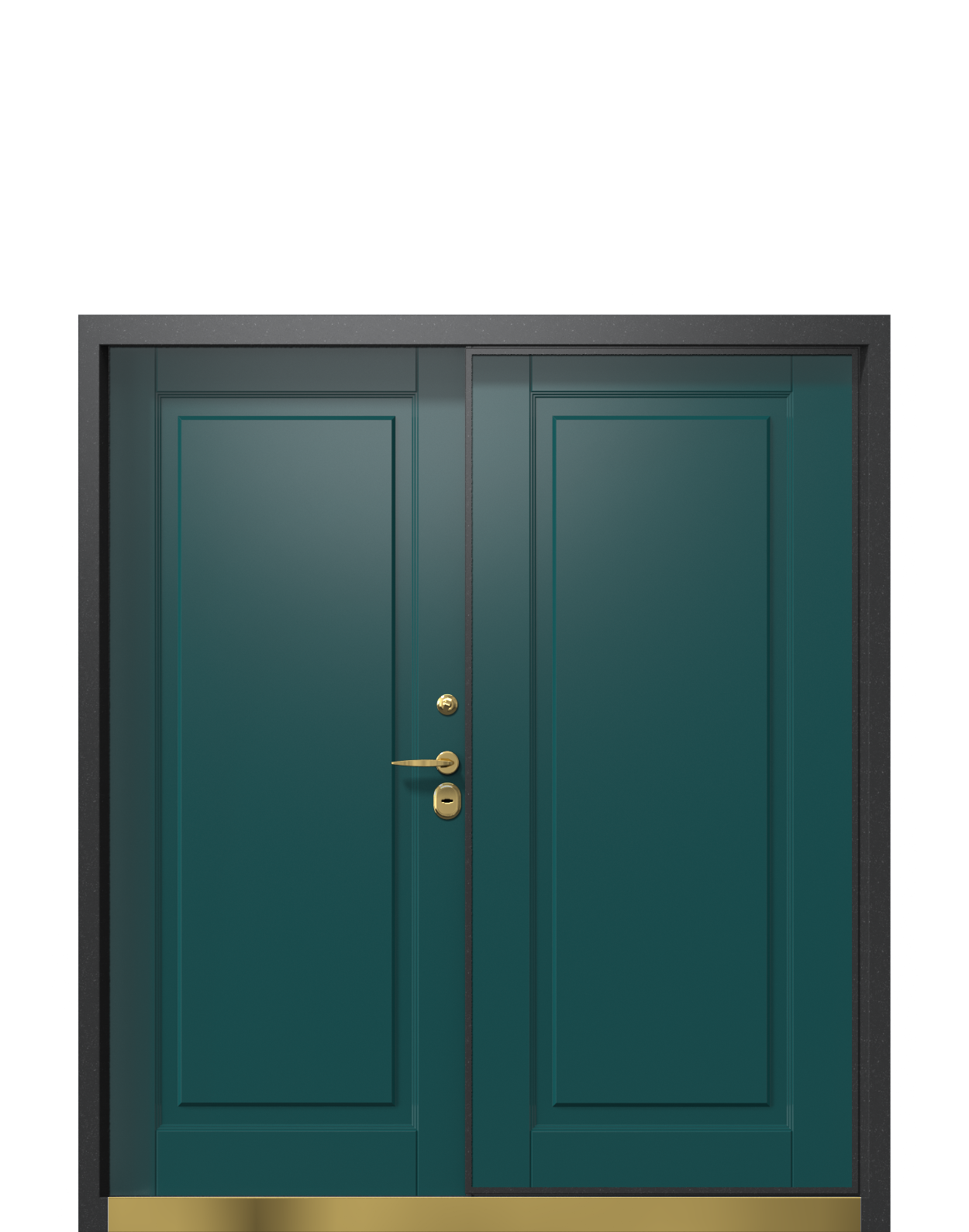 Входная дверь в коттедж или частный дом TermoPlus, Vesuvio, Collori Зеленое сукно - яркое решение для классических экстерьеров. Насыщенный натуральный цвет внешней стороны “Зеленое сукно” входной группы станет акцентным элементом внешнего образа дома, а внутренняя часть в нейтральном черном цвете RAL 9005 впишется в любую концепцию внутреннего пространства. Фурнитура в цвете “золото” органично дополняет оба оттенка.