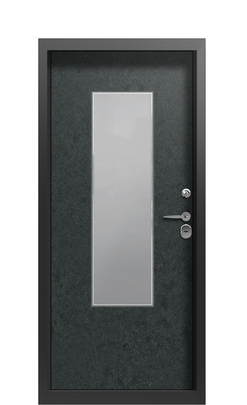 Дверь TermoPlus Vesuvio Terma Premium Черный гранит 2702 с индивидуальным дизайном гармонично впишется в интерьер и экстерьер вашего дома или коттеджа. Ее важное достоинство – устойчивость к низким температурам и неблагоприятным погодным условиям, а также способность поддерживать оптимальный микроклимат в помещении в любое время года.В отличие от стандартных моделей, эта дверь оснащена терморазрывом. Это термоизоляционный слой, проложенный между наружным и внутренним слоем металла. Внутри дверей происходит термический разрыв. Это значит, что внутренняя сторона всегда будет иметь высокую температуру в холодное время года и более низкую – в жаркое.Отделка двери комбинированная. Наружная сторона металлическая, гладкая, окрашенная в цвет Vesuvio. Изнутри конструкция обшита гладкими панелями Terma Premium, изготовленными по технологии, которая обеспечивает их высокую прочность и твердость. Цвет поверхности – Черный гранит. В центральной части створки установлено прямоугольное зеркало оттенка Графит.Купить входные металлические двери с терморазрывом можно на фабрике Termo. Предлагаем 3000 вариантов оформления, принимаем заявки на работу по индивидуальным проектам.